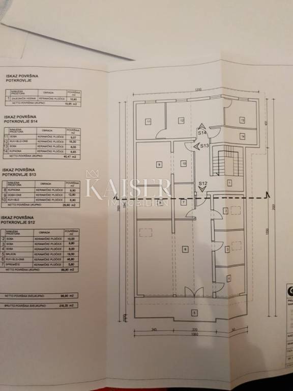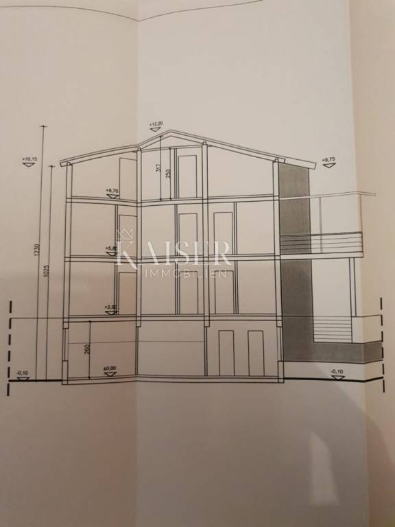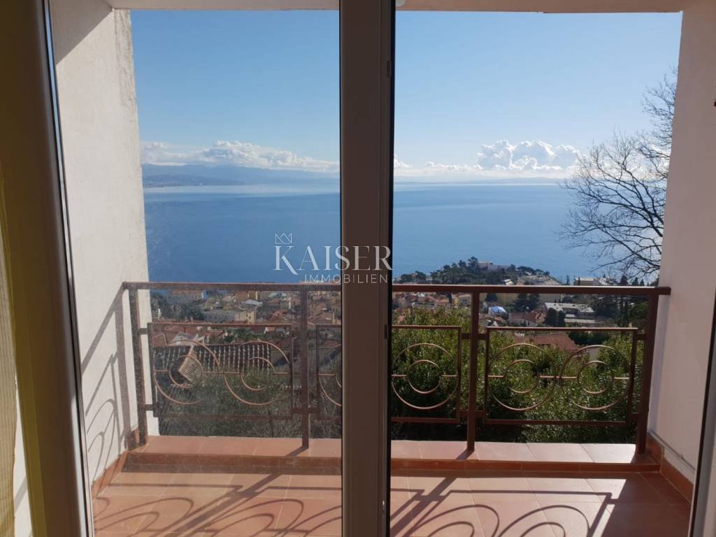 Kaiser Immobilien presents a house in Opatija, 15 minutes' walk from the coast and beaches. The house has 4 above-ground floors (basement, ground floor, 1st floor and attic) with a total construction gross area of 715.80 m2 and offers 14 residential units. The house is located in a quiet street and has a beautiful open view of the sea. The house is accessible on foot, but not by car.