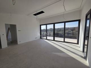 Kaiser Immobilien presents a penthouse under construction in the city of Krk on the island of Krk. The penthouse is located on the second floor of the residential building. The apartment consists of a living room, a dining room and a kitchen, which form the concept of an open space with access to the terrace. The apartment also contains two bedrooms with their own bathroom and wardrobe and access to the terrace, and another bedroom with its own bathroom and a room intended as a toilet and laundry room. The apartment has 2 parking spaces. Heating and cooling of the apartment will be provided via a heat pump, and floor heating is additionally provided. This combination of heating systems ensures a comfortable temperature throughout the year. The apartment is in a great location. Excellent transport links mean that you are only minutes away from important everyday and entertainment facilities, making it a convenient place to live. The distance from the sea is 1000 meters. Depending on your needs, this apartment can provide you with comfort and quality living space. The planned construction completion date is July 2024. For additional information, contact an agent.
