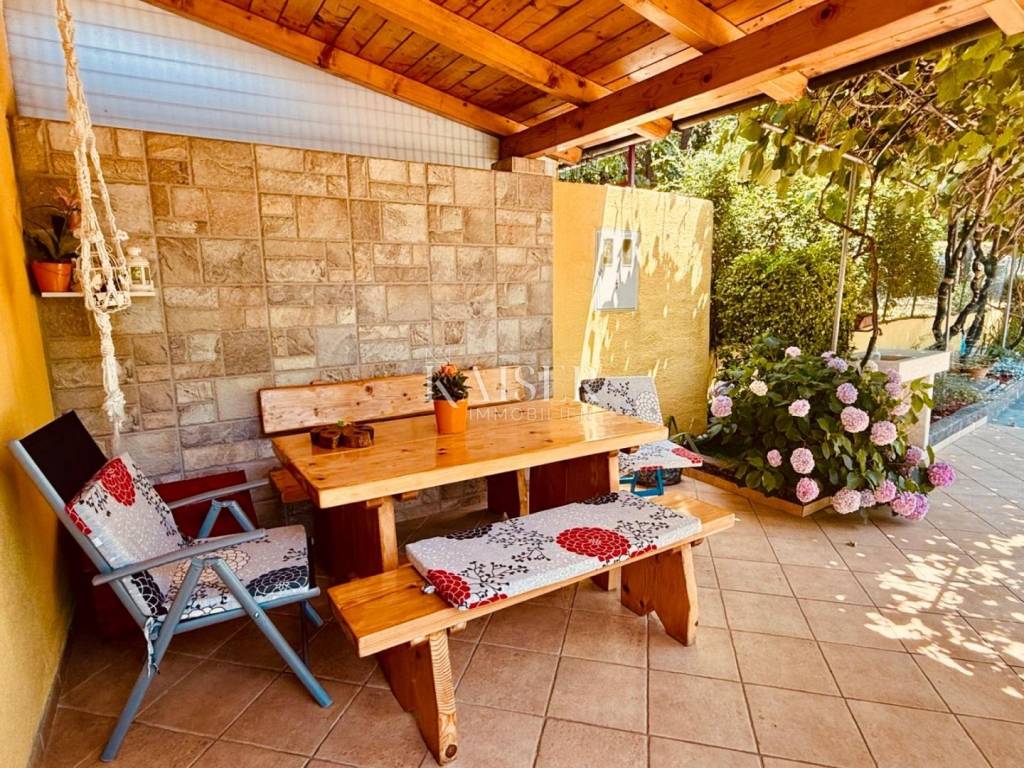 The real estate agency Kaiser Immobilien from Opatija presents from its offer a third of a coastal stone house located in the green surroundings of the picturesque village of Draga, a suburb of the city of Rijeka, with a very pleasant partially covered terrace, outbuilding, garage and a beautiful garden including a garden house.