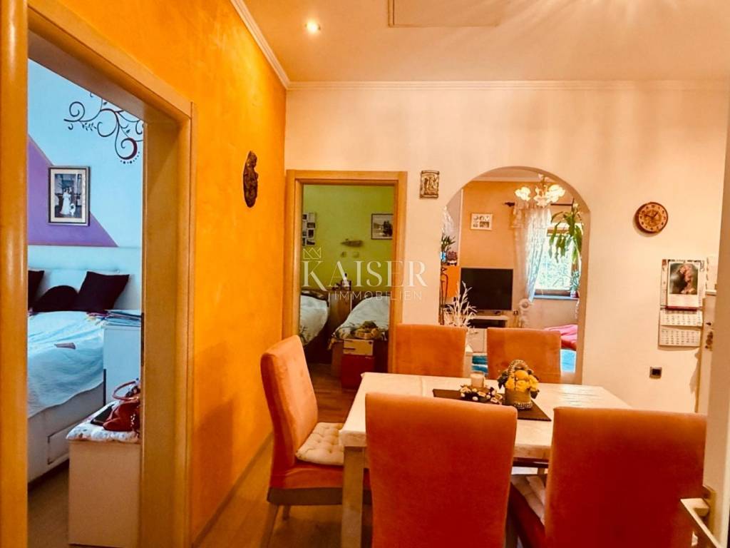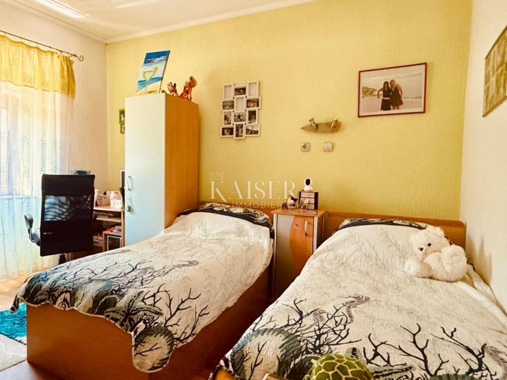 The house has a southwest orientation and is horizontally divided, which means that the apartment in question occupies the entire 1st floor, or rather the high ground floor with direct access to the aforementioned terrace.