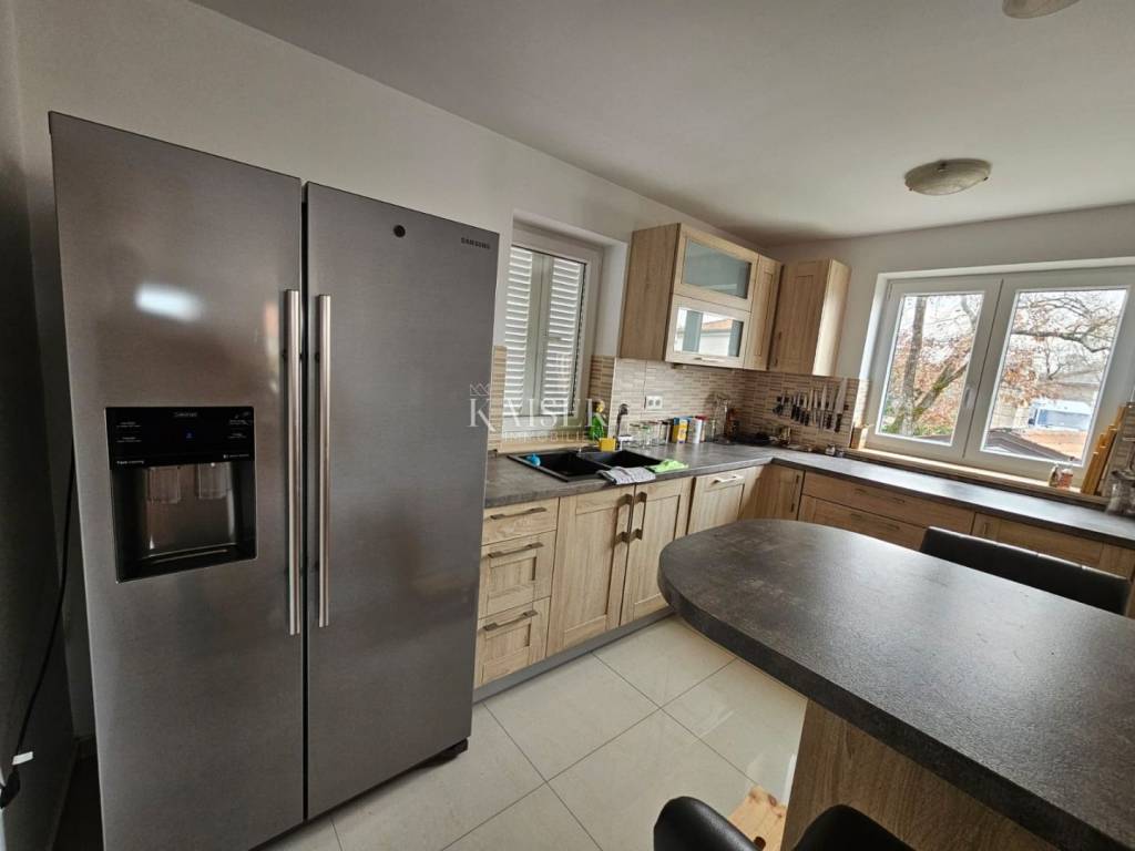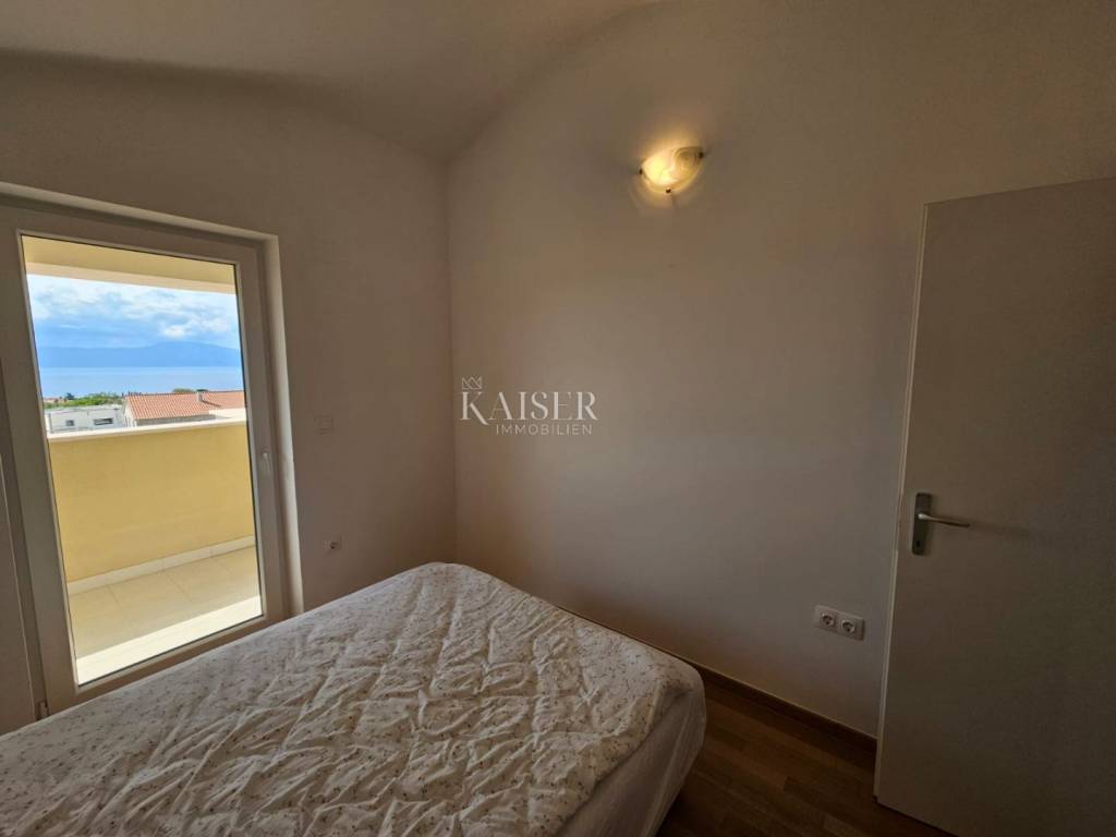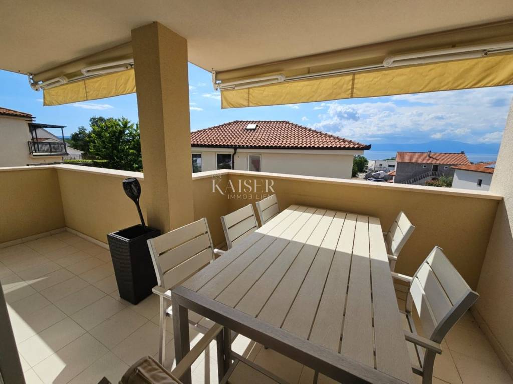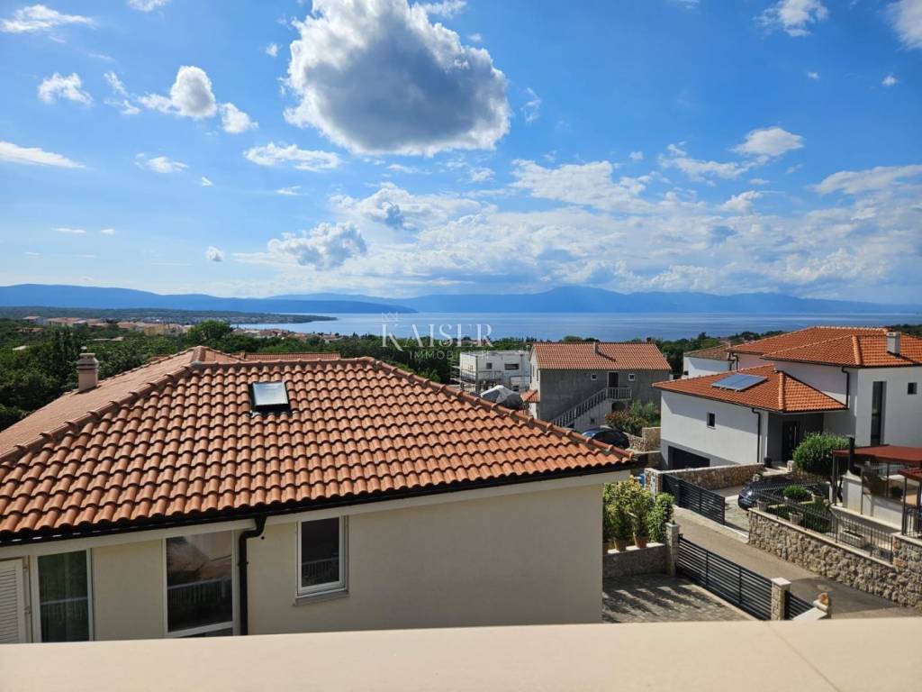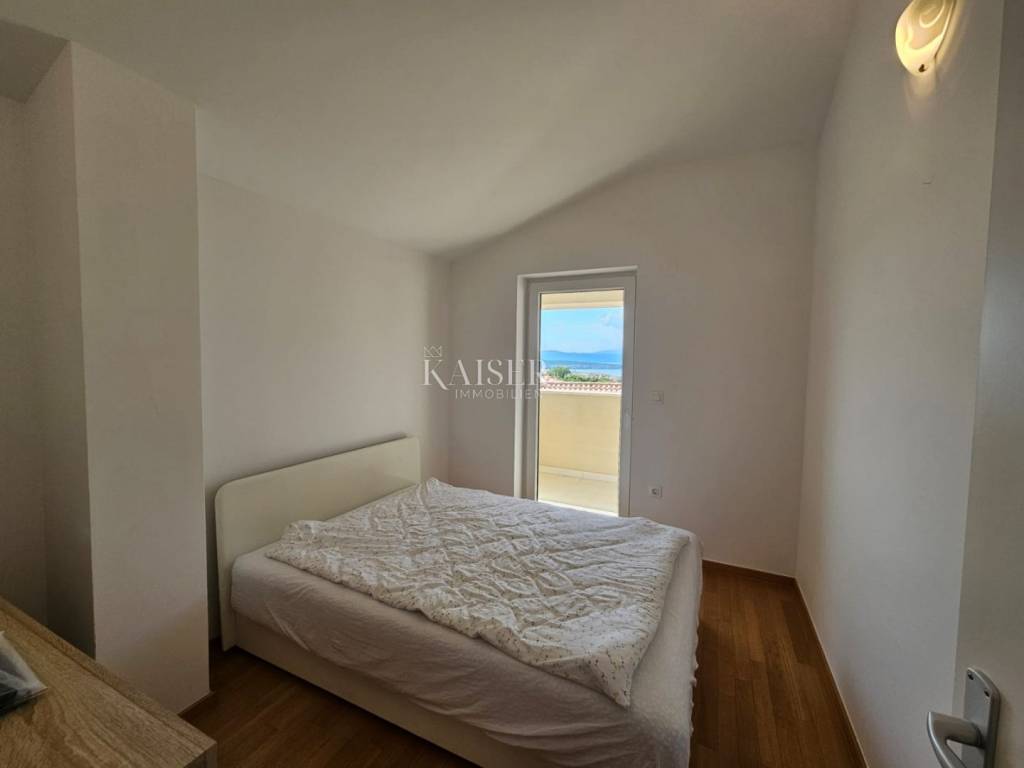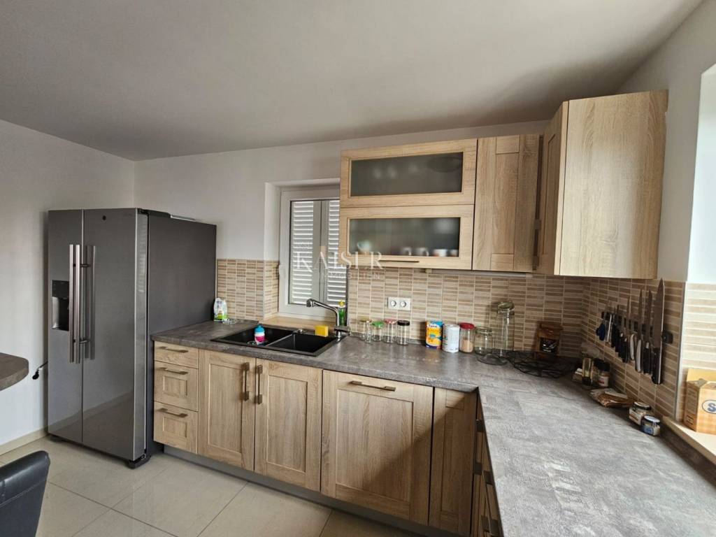 Kaiser immobilien mediates the sale of a beautiful two-story apartment in the vicinity of Malinska on the island of Krk. The apartment with a total area of 100m2 extends through the first and second floor of a two-story building. The apartment on the first floor consists of an entrance area, a living room, a spacious covered terrace, a kitchen and a dining room, as well as a bathroom and a pantry, while on the second floor, which is reached by stairs from the living room, there is a sleeping area with three bedrooms and a bathroom. . Two bedrooms have access to the terrace. The terrace offers a beautiful view of the sea and the nearby island of Cres. High-quality materials and equipment were used in the construction and furnishing, so the floors in the apartment are made of natural parquet and top quality Spanish ceramics, PVC joinery is installed, there is an inverter air conditioner for cooling and heating, and a pellet stove. The kitchen is equipped with top-quality elements and appliances, and the additional convenience is that the apartment is sold with all equipment and furniture. The apartment has two parking spaces, and in one parking space there is a garden house that can be used as an additional storage room. ID CODE 105-231 The commission of the agency for the buyer is 3% + VAT and is paid in case of real estate purchase, at the conclusion of the first legal act. The apartment is located in a quiet and idyllic neighborhood, and is close to all important facilities.
