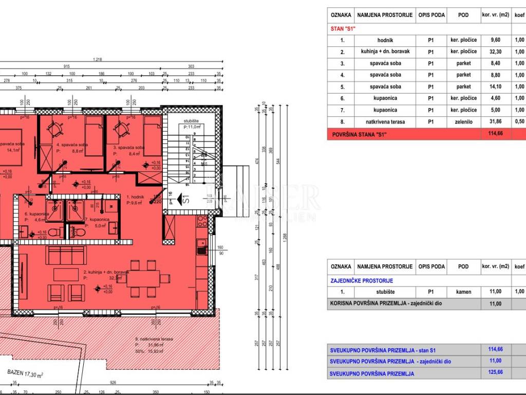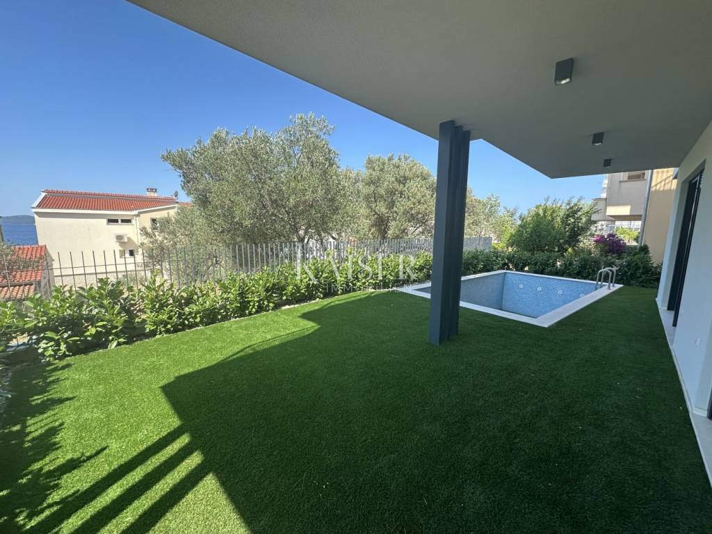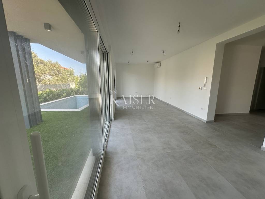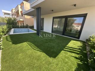 Kaiser Immobilen presents a modern and luxurious apartment on the ground floor of a small residential building in the attractive settlement of Kožino, just 90 meters from the sea. Kožino is a quiet and desirable settlement located just a ten-minute drive from the center of Zadar. It is known for its natural beauty, crystal clear sea, well-maintained beaches and peaceful atmosphere, making it an ideal location for a quiet family life, vacation or investment in tourism. This property represents the perfect combination of luxury, privacy and proximity to the sea, which makes it extremely attractive on the market. The apartment has a total living area of 135.59 m², and it also has a spacious garden of 105 m² with a private swimming pool - the perfect place to relax and enjoy the Mediterranean ambiance. It consists of a spacious living room with kitchen and dining room, which leads to a large terrace, and then to a landscaped garden with a swimming pool. It has three bedrooms, the main one of which has its own bathroom and walk-in closet. In addition, the apartment has another additional bathroom. There is a storage room in the basement of the building, and the apartment also has two private parking spaces. The floor plan with the layout and areas is among the pictures. The property was built to the highest standards - it has a thermal facade, underfloor heating in the bathrooms and living room, and air conditioning in all rooms. Top-quality exterior joinery with triple-layer insulated glass, electric roller shutters and built-in mosquito nets has been installed, which ensures additional comfort, insulation and protection. The agency commission for the buyer is 3% + VAT and is paid in the case of purchasing the property, upon conclusion of the first legal act. Contact us with confidence for more information and to arrange a viewing. Tel: +385915404646 Email: vedran@kaiser-immobilien.hr