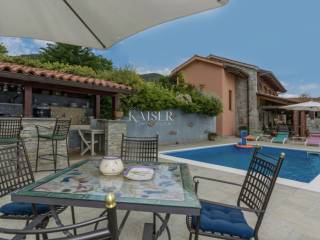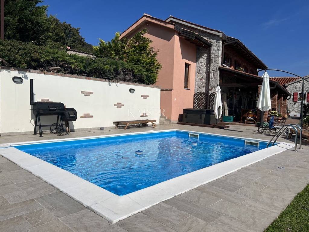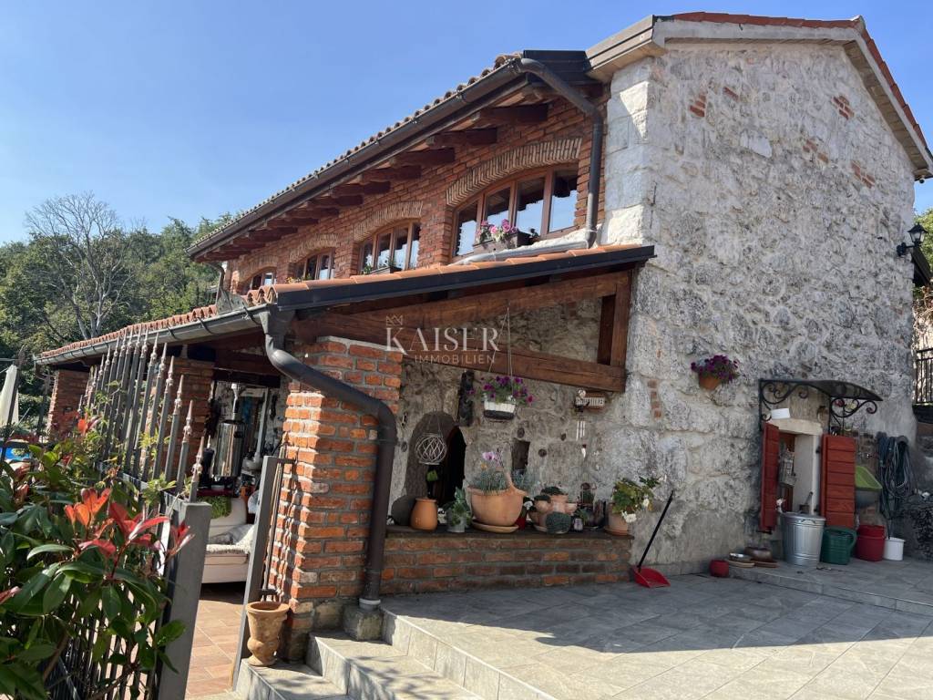 Kaiser Immobilien is proud to present a beautiful stone house from 1896, located on the picturesque slopes of Učka, near the town of Poljane. This charming property, which has been carefully renovated, enchants with its traditional style and offers a spectacular view of the Kvarner Bay. The house with a total area of 105.35 m2 radiates character and beauty. The ground floor includes a kitchen, a dining room and a spacious living room that opens onto a beautiful covered terrace, ideal for enjoying the view. Also, on the ground floor there is a storage room and a staircase leading to the first floor. The ground floor occupies 63.02 m2. On the first floor, with an area of 42.33 m2, there is a spacious bathroom, a hallway and two charming bedrooms. Almost every room in the house offers an incredible view of the sea, allowing you to spend every moment enjoying the beauty of the Kvarner Bay. The yard of 1088 m2 is perfectly equipped with top-quality facilities: swimming pool measuring 6x4 m, sunbathing area, fully equipped summer kitchen with barbecue, carport for parking, woodshed and water tank of 30 m3. There is also enough space for parking several cars. This property is the perfect choice for lovers of traditional stone houses and natural beauty, and is located just a few minutes' drive from the Učka Nature Park and the beaches in Ičići. Distance to European cities: Munich: 533 km Vienna: 514 km Prague: 840 km Budapest: 595 km For more information and to arrange a viewing of the house, contact the Kaiser Immobilien agency at +385 91 540 4646.