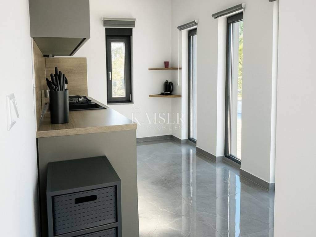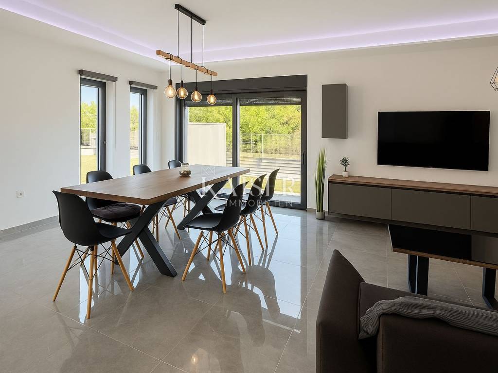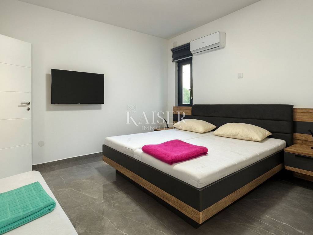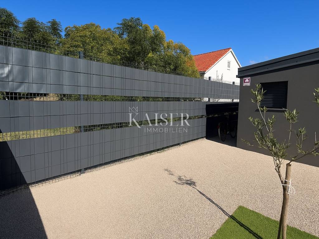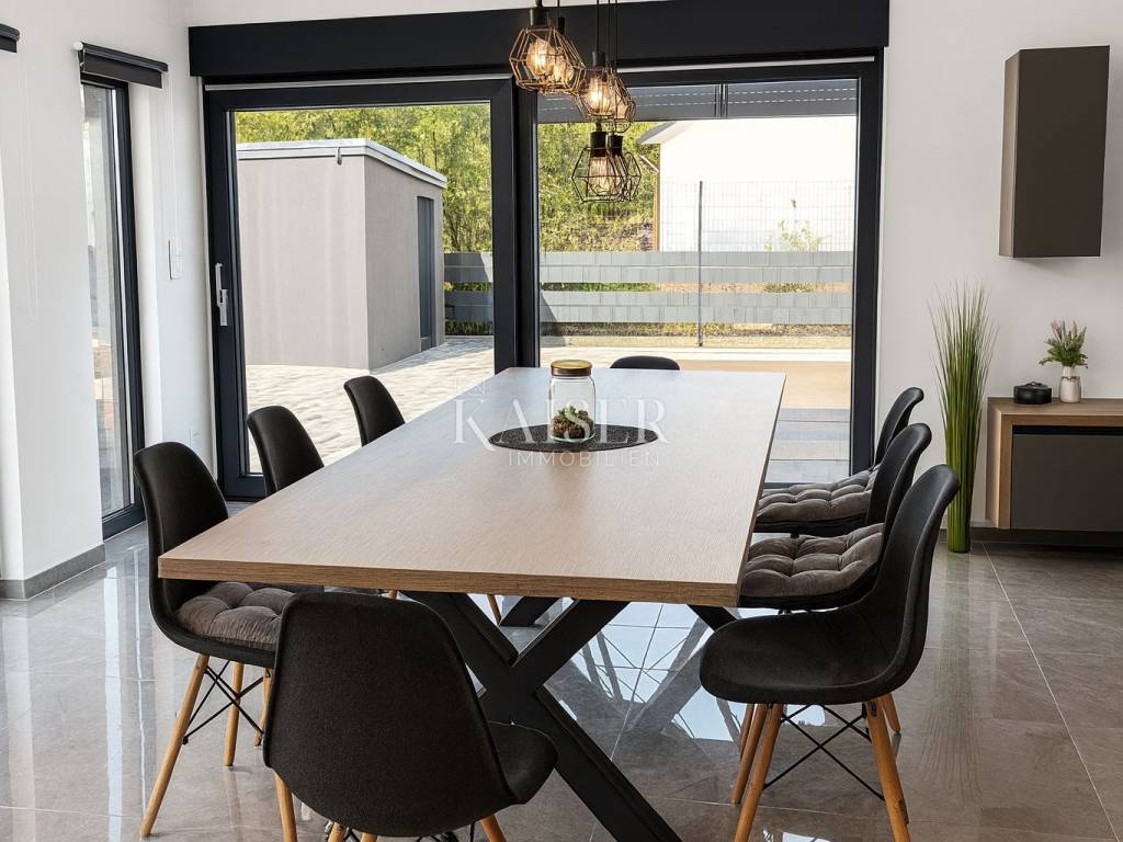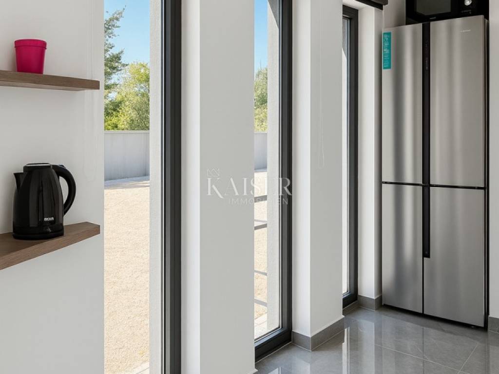 Kaiser Immobilien presents a modern single-storey house with simple lines and contemporary design, located in a quiet part of Ninski Stanovi - just a few minutes' drive from royal Nin and ten kilometers from Zadar.