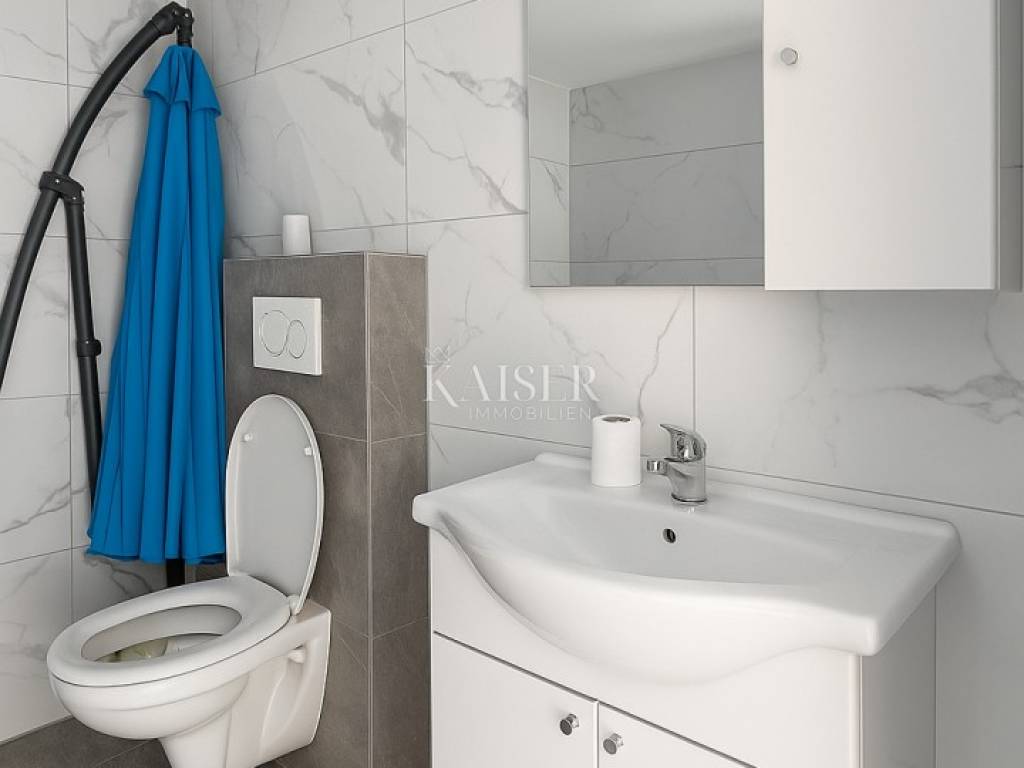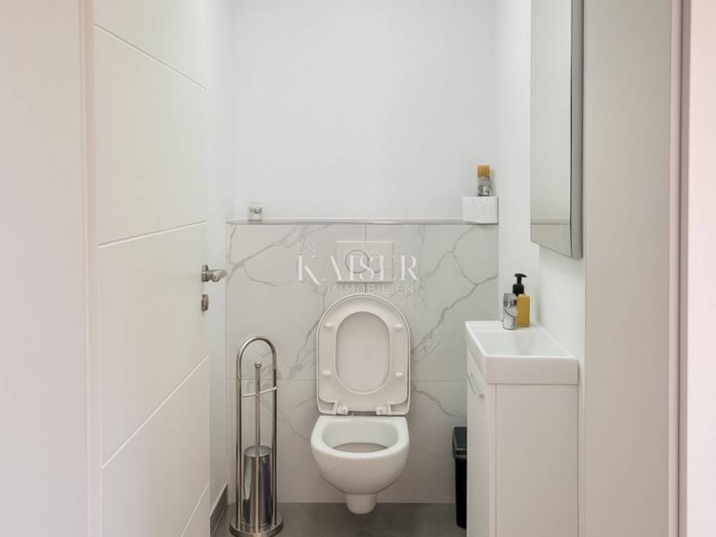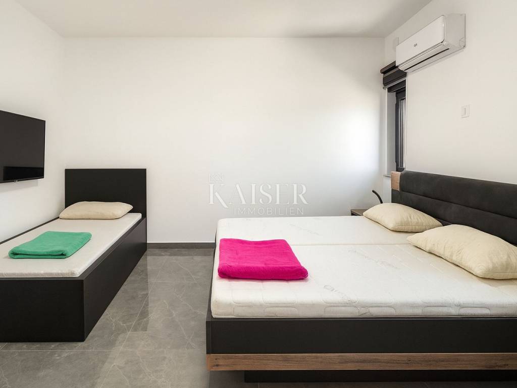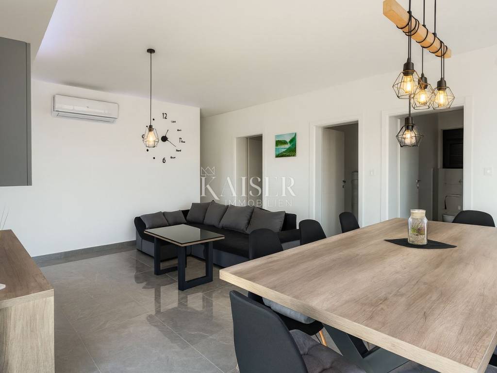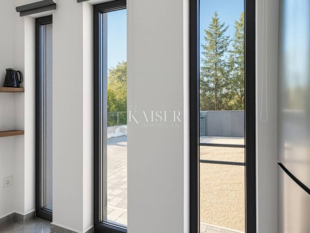 Kaiser Immobilien presents a modern single-storey house with simple lines and contemporary design, located in a quiet part of Ninski Stanovi - just a few minutes' drive from royal Nin and ten kilometers from Zadar.