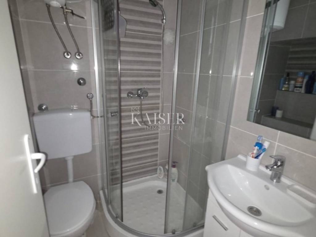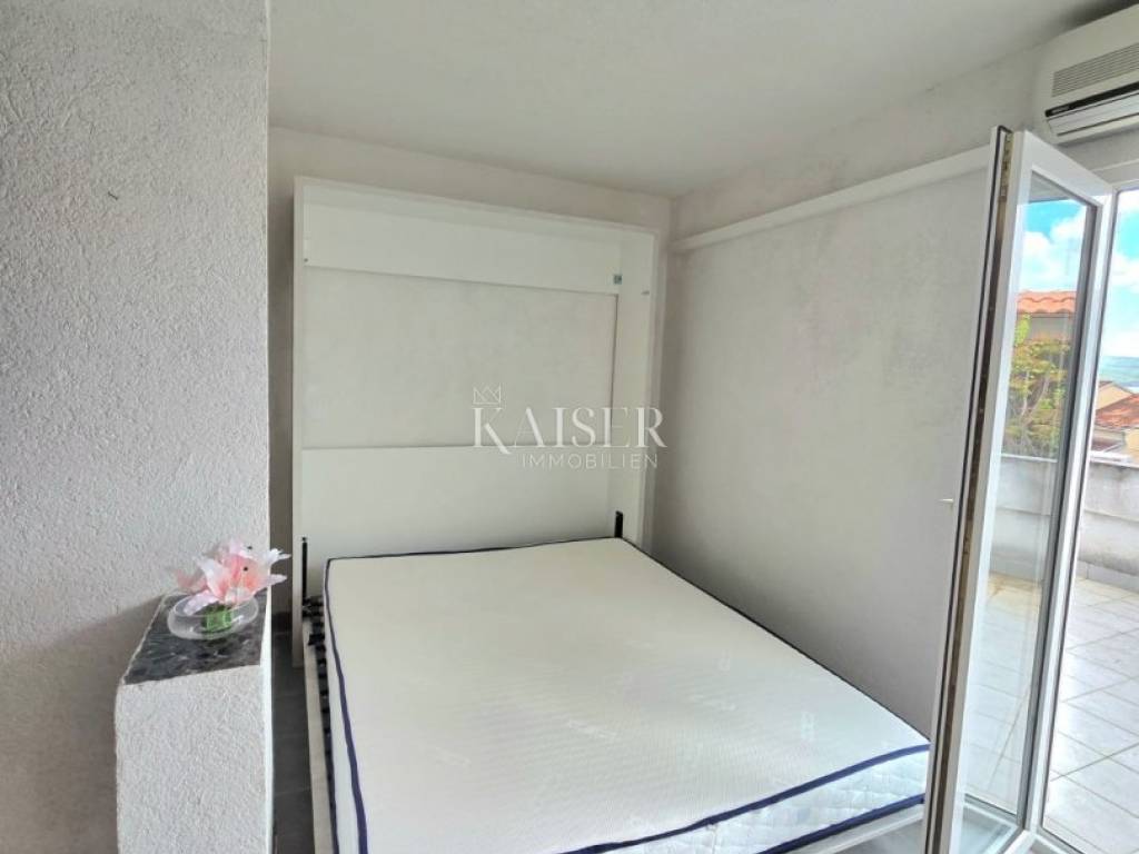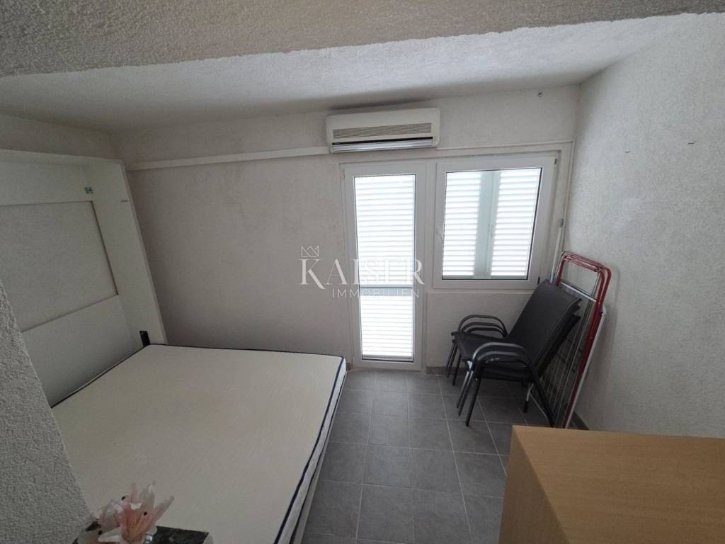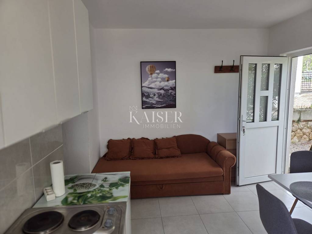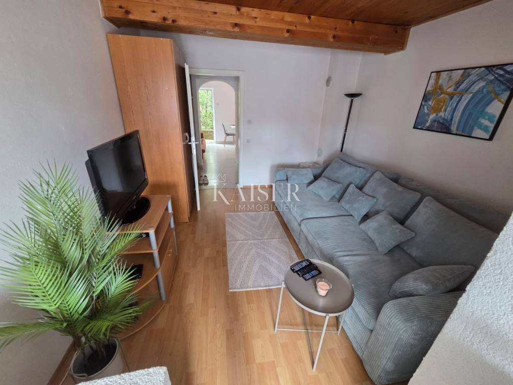 The apartment is located only 200 meters as the crow flies from the sea, and the first beaches can be reached in a pleasant ten-minute walk. It is located in a small residential building in a quiet location, close to all necessary amenities such as shops, restaurants and promenades. The 54 m² apartment consists of a kitchen with a dining room and a living room, a bedroom, a bathroom with a toilet, and a spacious south-facing terrace of 12 m² with a partial sea view. The apartment has been recently renovated - new water and electricity installations have been installed, the bathroom has been renovated, and new ceramics have been installed. It is being sold fully furnished and ready to move in. The sofas in the living room and dining room are pull-out sofas, which allows for additional beds for guests. Parking is available near the property (about 50 meters away). The perfect choice for those looking for a quiet environment, proximity to the sea, and an apartment without additional investment.