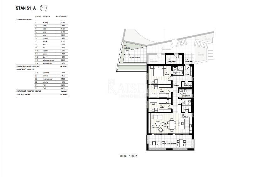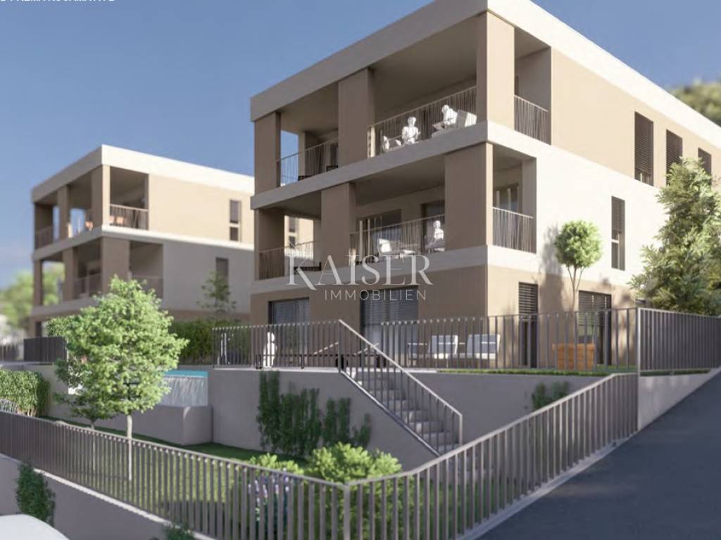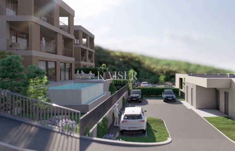 Kaiser Immobilien offers an exclusive modern property in Kostrena – an S2-D apartment measuring 164.90 m² with a private pool and a beautiful view of the Kvarner Bay. In the quiet settlement of Glavani in Kostrena, surrounded by greenery and a Mediterranean atmosphere, this luxurious apartment is located, combining contemporary architectural expression, top-quality construction and complete comfort. The spacious interior of 164.90 m² is designed as a three-room apartment with a living room, modern bathrooms, an additional toilet, a wardrobe and practical utility rooms. The open living area with kitchen and dining room exudes light and elegance, and large glass walls open up a spectacular view of the sea and the islands of Kvarner. The apartment has an adjoining garden of 182.60 m², carefully landscaped and enhanced by a private pool of 17.64 m², which provides a feeling of complete privacy and peace. Special emphasis was placed on the selection of materials and construction technology – only top-quality materials were used, and the building is equipped with underfloor heating via a heat pump, air conditioning, three-layer parquet, the highest quality ceramics and aluminum joinery with large glass surfaces that provide additional warmth and light to the space. The apartment has two parking spaces and a storage room, and the entire project stands out with its thoughtful design and architecture that ensures long-term value and a high level of living comfort. The location in Kostrena perfectly combines peace and privacy with the proximity of all the amenities needed for modern life. In the immediate vicinity there are schools, kindergartens, shops, promenades, bicycle paths and well-maintained beaches, while the center of Rijeka is only a ten-minute drive away. Kostrena is known for its beautiful coast, long promenade and Mediterranean landscape that provides a high quality of life throughout the year. In addition to excellent connections with Rijeka and the entire Kvarner, Kostrena is located at an ideal distance from major European cities. It is about 130 kilometers to Ljubljana, 90 kilometers to Trieste, 160 kilometers to Zagreb, 220 kilometers to Venice, while Munich and Vienna are approximately 500 kilometers away. Thanks to the highway and the proximity of Rijeka Airport, travel is easy and fast, which further increases the attractiveness of this location. This property represents the perfect combination of luxury, comfort and modern elegance. It is ideal for family life, but also as an investment for elite tourism. Kaiser Immobilien - your reliable partner in finding a home with a sea view. The agency's commission for the buyer is 3% + VAT. The commission covers all services related to the purchase and is paid only in the case of purchasing a property, upon conclusion of the legal act. For all additional information, please contact: Marijana Cuculić Phone: +385981869950 E-mail: marijana.cuculic@kaiser-immobilien.hr Nelica Arsenijević Phone: +385919254809 E-mail: nelica@kaiser-immobilien.hr