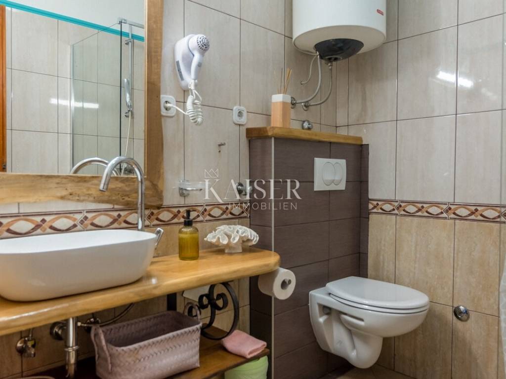 Rovinj, the pearl of Istria, is one of the most charming coastal towns on the Adriatic. Picturesque stone streets, the recognizable bell tower of the Church of St. Euphemia and the picturesque coast create a unique Mediterranean atmosphere. This historic town offers a rich cultural heritage, top-notch gastronomic experiences and crystal clear sea, making it the perfect destination for vacation and living. Kaiser Immobilien presents you with a beautiful 35 m² apartment located on the first floor of a stone building in the very heart of the old town of Rovinj, in an extremely rare and valued location - first row to the sea. Upon entering the apartment through a small hallway, you enter a pleasant living area that unites the kitchen and dining room, and from the window you can enjoy a captivating view of the sea, which gives the space a unique atmosphere. The kitchen is fully equipped with an electric stove, a Zanussi oven, a hood and a new Beko refrigerator with freezer. Every stay in this space is enriched with scenes of the open sea that change from hour to hour, creating a special experience of enjoying the interior. The apartment has one comfortable bedroom with a double bed, whose windows frame unforgettable views of the sea and the recognizable silhouette of Rovinj. There is also a bathroom equipped with a shower and toilet, with a connection for a washing machine, which further increases the practicality of living. Heating is provided by electric heaters, and air conditioning is not required thanks to the pleasant summer temperatures in the old town center. Ceramic flooring is installed throughout the apartment, which makes maintenance easier, and the property requires minor renovation, giving the future owner the opportunity to adapt the interior to their own taste. Wooden joinery, made according to the strict regulations of the city of Rovinj, further emphasizes the authenticity of this space. Although the apartment does not have a private parking space, its value increases significantly due to the fact that it is located in an old stone building with several apartments and a shared terrace on the ground floor that leads directly to the sea - a privilege offered by only a few properties in this part of the city. The proximity of the sea, the smell of salt and the sound of the waves create a special ambiance that makes this apartment unique. This property represents an excellent opportunity for anyone looking for an apartment in one of the most desirable locations in Rovinj. Whether as a summer residence or an investment with an already well-established tourist rental throughout almost the entire year, the apartment offers a combination of the charm of old town architecture, proximity to the sea and a true Mediterranean way of life. Proximity to amenities: Restaurant - 100 m Café - 90 m Shop - 350 m Market: 300 m Landmarks: 10 m Church of St. Eufemije: 200 m Sea- 1 m Beach- 1 m-200m Marina- 700 m Parking- 650 m Post office- 800 m Müller- 850 m Bus station: 850 m Airport- 40 km Distance from major cities: Rovinj- Ljubljana: 186 km Rovinj- Vienna: 567 km Rovinj- Budapest: 591 km Rovinj- Prague: 838 km Rovinj- Munich: 587 km Rovinj- Zagreb: 250 km The agency commission for the buyer is 3% + VAT and is paid in the case of purchasing a property, upon conclusion of the first legal act. Interested buyers can view only after signing a real estate brokerage contract. ID-CODE: 127-186 If you would like to visit the property in person, please contact: Jennifer Hofmann E-mail: jennifer@kaiser-immobilien.hr Tel: +385-91-515-0887 http://kaiser-immobilien.hr/