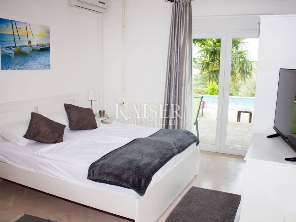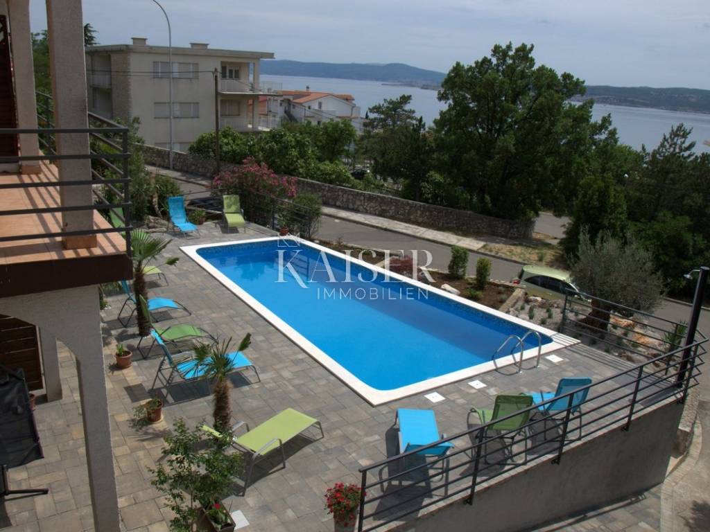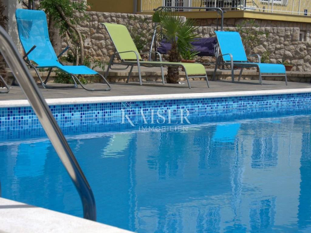 Kaiser Immobilien presents a house with eight apartments located in one of the most beautiful parts of Crikvenica. The house is located only 250 meters from the nearest beach, and has its own swimming pool. The apartments are mostly one-bedroom with a living room, a bathroom and a terrace. All residential units are air-conditioned, include satellite TV, Wi-Fi and balconies or terraces with a view of the sea. There are 8 parking spaces, a garage, a barbecue, a laundry room in the garden, and they are only fifty meters from the store, playground, and other amenities. The house has a well-established tourist activity, and considering the location, it represents an excellent investment. Feel free to contact your agent.