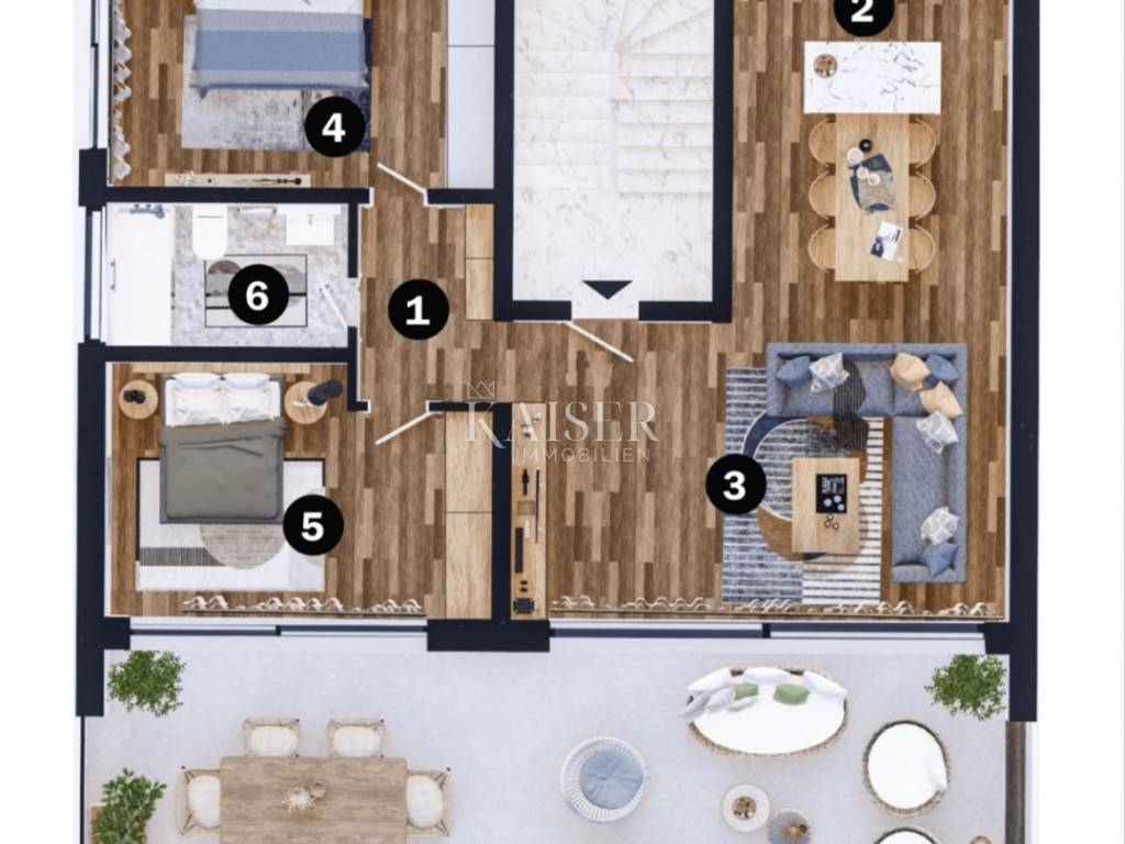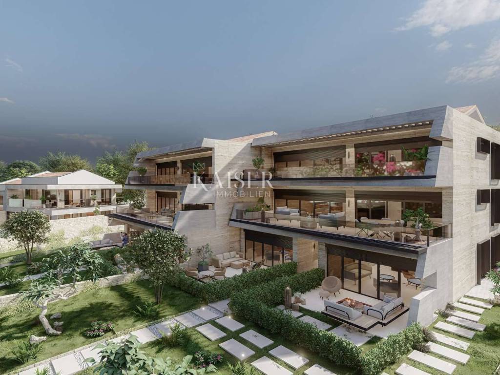 Apartment D8 app3 Kaiser Immobilien offers for sale a wonderful resort that is still under construction, and already entices with its location, i.e. the combination of proximity to big cities and the beautiful Istrian coast. This wonderful place is located in an attractive location between Novigrad and Umag, which are only 10 minutes away by car. It is only 100 m from the sea and well-kept beaches. In the immediate vicinity there are restaurants, cafes, promenades, bicycle paths and various other facilities. This resort is designed and engineered to make your life luxurious, comfortable and convenient. The special feature of this resort is not only the exceptional location, but also the closed resort itself, which offers, in addition to excellent facilities, such as a reception, restaurant, wine bar, shared pool, spa and relaxation zone, gym, and there is also a charging station for your electric pets. There will also be environmental maintenance and other services. You can be safe inside the resort because the resort will be under video surveillance 24/7. This luxury apartment is part of a building with 4 apartments. It covers a gross area of 126 m2, of which the net usable area is 82 m2, while the total size of the terrace is 44 m2. It consists of two bedrooms, a bathroom and a spacious living room with a kitchen and dining room and an exit to the terrace that stretches the entire length of the apartment, which you can enjoy all year round. The resort consists of 21 villas and 16 apartments, offering three different types of villas and four different types of apartments. Villas range from 202m2 to 274m2, with prices from €800,000 to €1,320,000, while apartments offer a compact luxury option with areas from 53m2 to 128m2 and prices from €280,000 to €630,000. All prices are without VAT. The works have already started in September 2023, and the resort is expected to be ready for you during the summer of 2025. Don't miss your chance to be a part of this enchanting seaside paradise in the making. The commission of the agency for the buyer is 3% + VAT and is paid in the case of real estate purchase, at the conclusion of the first legal deed. Distance: Pula Airport - 80 km Ljubljana - 136 km Munich - 537 km Vienna/Vienna - 518 km Prague - 844 km For additional information and viewing, contact your agent by email: dean.cvitko@kaiser-immobilien.hr or phone number: 00385 91 5284449