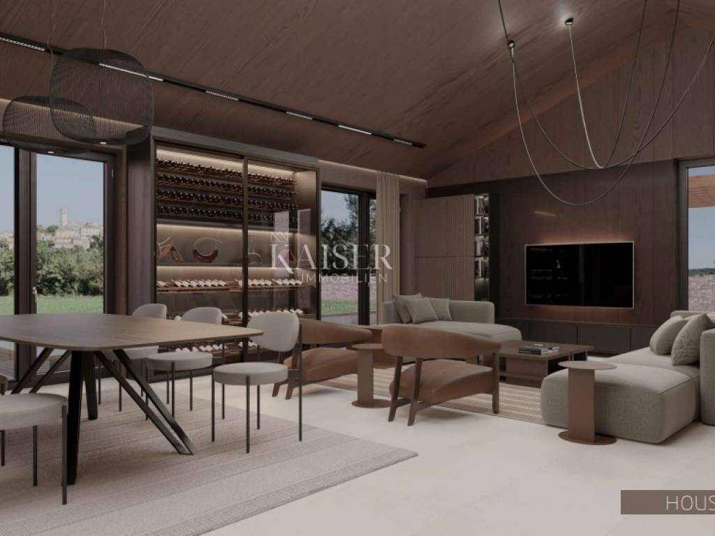 Kombinacija tradicionalnog istarskog stila (prirodni kamen i drvo) s modernim dizajnom i tehnologijom.