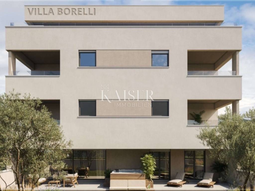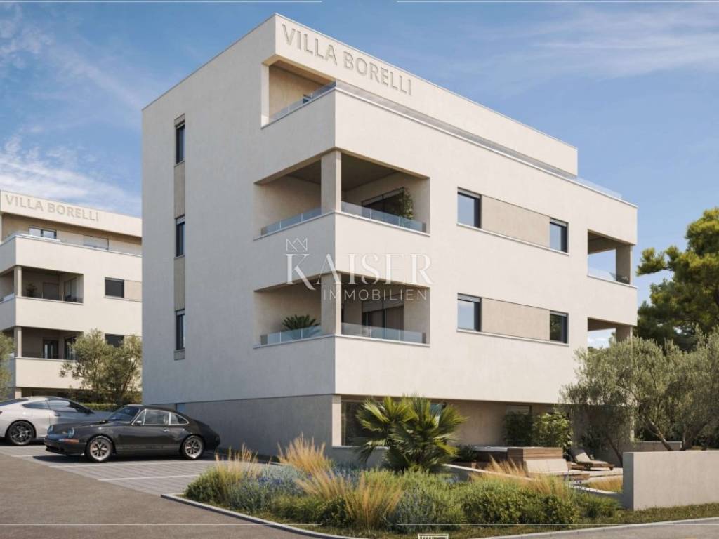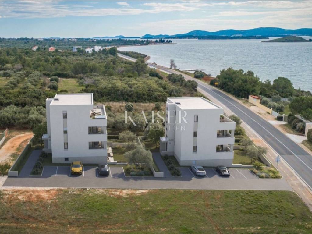 Kaiser Immobilien is proud to present Stambeni duo, a contemporary residential complex located in a peaceful coastal setting. This architecturally refined oasis offers a high standard of living with top design and impeccable functionality of the space. The Stambeni duo comprises two elegant buildings, each with several floors, including a basement. Inside, there are spacious and thoughtfully designed apartments, and among them, apartment S3, located on the ground floor of the Villa 2 building, stands out. This apartment is the perfect option for a quiet family life or a luxurious vacation. Spaciousness and sophisticated layout The total internal area of the apartment is 52.96 m², while an additional 8.11 m² of loggia provides the perfect outdoor space for relaxing, dining al fresco or simply enjoying the fresh sea air. The entrance to the apartment leads through a 5.43 m² hallway, which allows for practical connectivity of all rooms and contributes to the functionality of the apartment. The central part of the apartment is a spacious living room with kitchen and dining area (23.81 m²), designed in an open concept that ensures plenty of natural light and airiness. Large glass walls connect the interior with the loggia, allowing a harmonious transition between the interior and exterior. The kitchen is modernly designed, providing ample space for cooking and organizing, while the dining room allows for pleasant moments with family meals or socializing with friends. Two bedrooms – private relaxation corners Apartment S3 contains two comfortable bedrooms, carefully designed for maximum comfort and privacy: Bedroom 1 (9.00 m²) offers enough space for a double bed and wardrobe and provides a pleasant space for relaxation. Bedroom 2 (10.33 m²) is even more spacious, ideal as a master bedroom with additional space for a wardrobe and chest of drawers. The 4.39 m² bathroom is modernly decorated, equipped with quality sanitary elements and ceramic tiles. Extended living space – loggia and additional amenities Apartment S3 also boasts an 8.11 m² loggia, which provides additional space for enjoying the outdoors, whether it's for morning coffee or relaxing with the sunset. The apartment also comes with a secured parking space and storage room, which further increases the practicality and comfort of everyday life. Perfect location by the sea Sv. Petar is an idyllic coastal village located between Zadar and Biograd na Moru - the perfect destination for those who want to escape the busy city rhythm, but with excellent transport connections and proximity to all key amenities. This picturesque Dalmatian place is characterized by beautiful beaches, crystal clear sea and untouched nature, making it ideal for a family vacation or a long-term stay. The residential duo is strategically located right by the sea, with a beautiful view of the coast, providing its residents with privacy and peace. Only 62 meters from the coast, the apartment offers easy and quick access to the beaches and all the charms of the Mediterranean lifestyle. Excellent transport connections This exclusive location provides easy access to larger cities and international destinations: Sv. Petar - Zadar: 10 km Sv. Petar - Biograd na Moru: 15 km Sv. Petar - Zadar Airport: 11 km Sv. Petar - Ljubljana: 345 km Sv. Petar - Budapest: 625 km St. Peter - Munich: 750 km Sv. Petar - Vienna: 640 km Sv. Petar - Prague: 910 km The commission of the agency for the buyer is 3% + VAT and is paid in the case of real estate purchase, at the conclusion of the first legal deed. ID CODE: 128-36 For more detailed information, please contact: Nina Fabijan Tel: +385 955046197