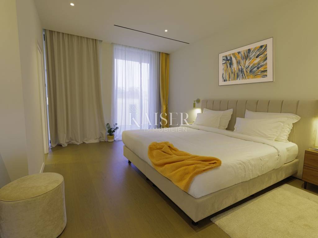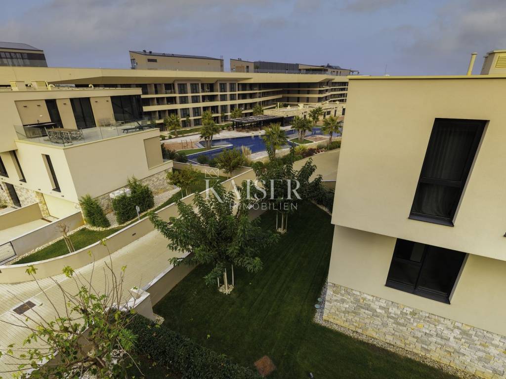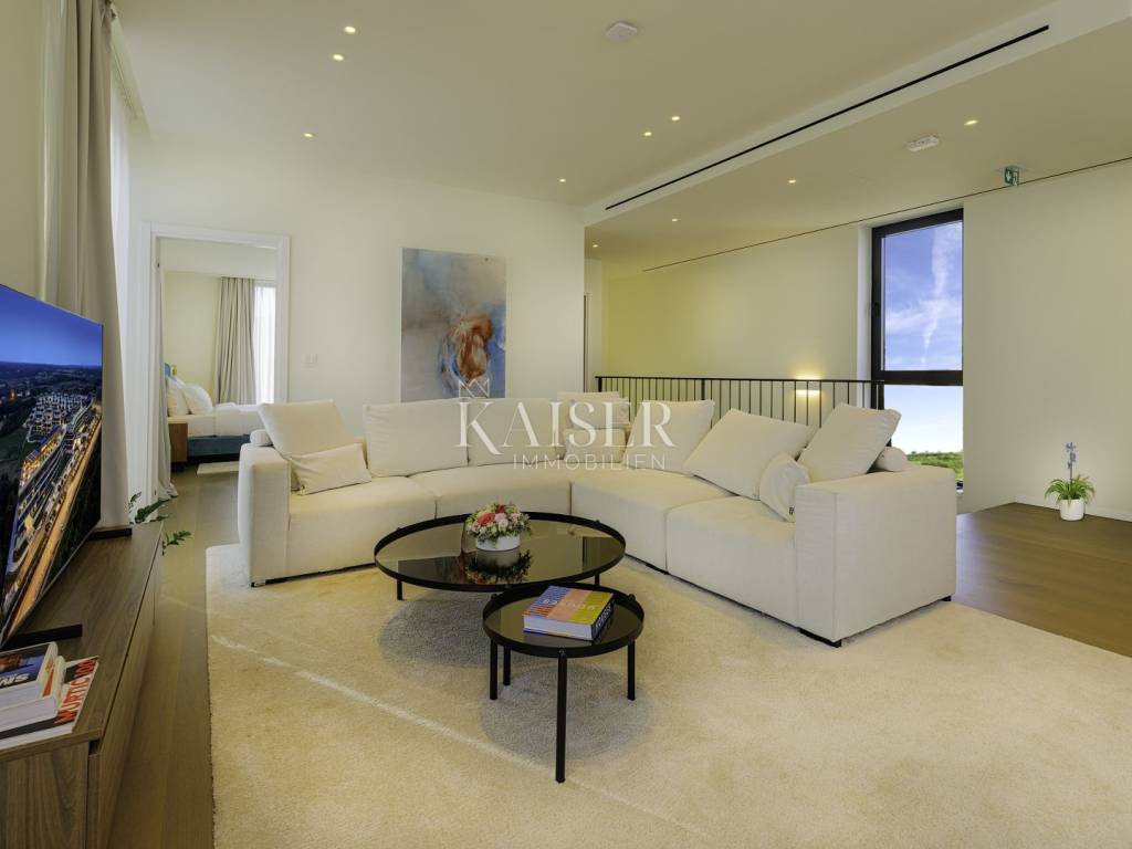 Savudrija, a quiet fishing village in the very north of Croatian Istria, is a carefully guarded secret of the Mediterranean. It is famous for the oldest active lighthouse in this part of the Adriatic, and is an ideal place to relax body and soul. Quiet and peaceful, perfect for an escape from everyday life, and at the same time rich in amenities and activities that will turn your vacation into an exciting adventure. Discover numerous wine roads, top-notch sports and cultural facilities, olive oil roads and romantic Istrian medieval towns. Laid by the waves of the Adriatic, in the shade of rich fragrant vegetation and with a view that takes your breath away, there is a luxury resort. Built to the highest standards and equipped with all the services and additional amenities you could wish for, this resort offers the peace, quiet and luxury of your own property, while at the same time enjoying a service that will pamper you and allow you to have relaxed and unforgettable days of vacation. Here, the unlimited relaxation of staying in your own property is combined with top-notch services, and all you have to do is enjoy the amenities: Rooftop infinity pool of 105 m - the largest rooftop infinity pool in Europe. It provides you with a unique swimming experience with a stunning view of the Piran Bay and the Dolomite Alps. The central garden pool is a favorite choice for family relaxation because part of the pool is adapted to the depth of children and is ideal for playing. Right next to the resort is a beach where you can relax with the smell of the sea and the sound of the waves. Wellness: relax in the magical hands of wellness experts who will give you the right advice and provide a personalized ritual treatment after which you will feel reborn. Kaiser Immobilien presents you with beautiful and modern villas perfectly integrated into the Mediterranean climate in which they are located. High construction standards allow you to immerse yourself in the resort's offer, while at the same time ensuring complete privacy, luxury and peace intended only for you and your loved ones. Priority use of all services in the resort is ensured at all times. Villas with their own infinity rooftop pools are also on offer. New materials, fresh, trend-setting design, sustainable construction, aromatic Mediterranean horticulture and unobstructed views, combined with an innovative concept of real property maintenance and management, with service worthy of a five-star hotel. The care of the property can be completely left to the resort, which ensures a carefree holiday, and as an upgrade and return on investment. You and your money are safe here - all you have to do is enjoy yourself. Opt for one of the luxury villas. You can choose the size of the villa, the style of interior decoration and the type of maintenance. After that, you can relax and enjoy. Investing in a villa in a resort is an investment in a carefree, hedonistic holiday for the whole family. Services and facilities at your disposal: • 24-hour supervision • maintenance service • concierge • transfers (by road or sea) from Venice, Pula, Rijeka and Trieste • on-site caretaker • electric buggy - free transport to the nearby beach • electric car charging station • restaurants and cafes by the pool on the ground • gym and sports facilities • on-site shopping • luxury restaurant on the roof terrace of the aparthotel (main building) • wellness & SPA • swimming pools with children's facilities • children's playground • babysitting service on request • private chef service on request • 101m long infinity pool on the roof terrace level • indoor pool area on the roof terrace level • private beach with bar • pool at ground level (garden pool) • children's pool at ground level We highlight the professional 18-hole Adriatic golf course, which is located in the immediate vicinity, by the sea, and the construction of another golf course is in preparation. Among the many villas, we highlight the semi-detached villa (V34) located in the central part of the resort, with sea views from almost every room. It consists of three bedrooms, a studio room, an open living room with kitchen, an entertainment room, a wine cellar, 4 bathrooms, a toilet, a parking space for two vehicles in the garage, and plenty of space on a terrace of more than 70m2. The villa is sold equipped with contemporary and stylish furniture, but you can also furnish it according to your wishes in agreement with the seller. This is a luxury villa of smaller dimensions, but with an extremely modern and open architecture that also allows you to experience nature and the sea, as well as quiet private moments. Enjoy your own villa while having all the resort services at your disposal with just one call. Savudrija is located near several airports, the largest of which is Venice Airport. In addition, nearby airports are Ljubljana, Trieste, Pula and Rijeka, while Zagreb Airport is a 2.5-hour drive away. Savudrija is located 515 km from Vienna and 460 km from Milan. The property is subject to VAT, so the buyer does not pay the 3% real estate tax. The agency's commission for the buyer is 3% + VAT. The commission covers all services related to the purchase and is paid only in the case of purchasing the property, upon conclusion of the first legal act. If you want this luxury villa in the resort to become your new home, please contact us. Damir Mlacović e-mail: damir@kaiser-immobilien.hr tel: +385-98-339-933