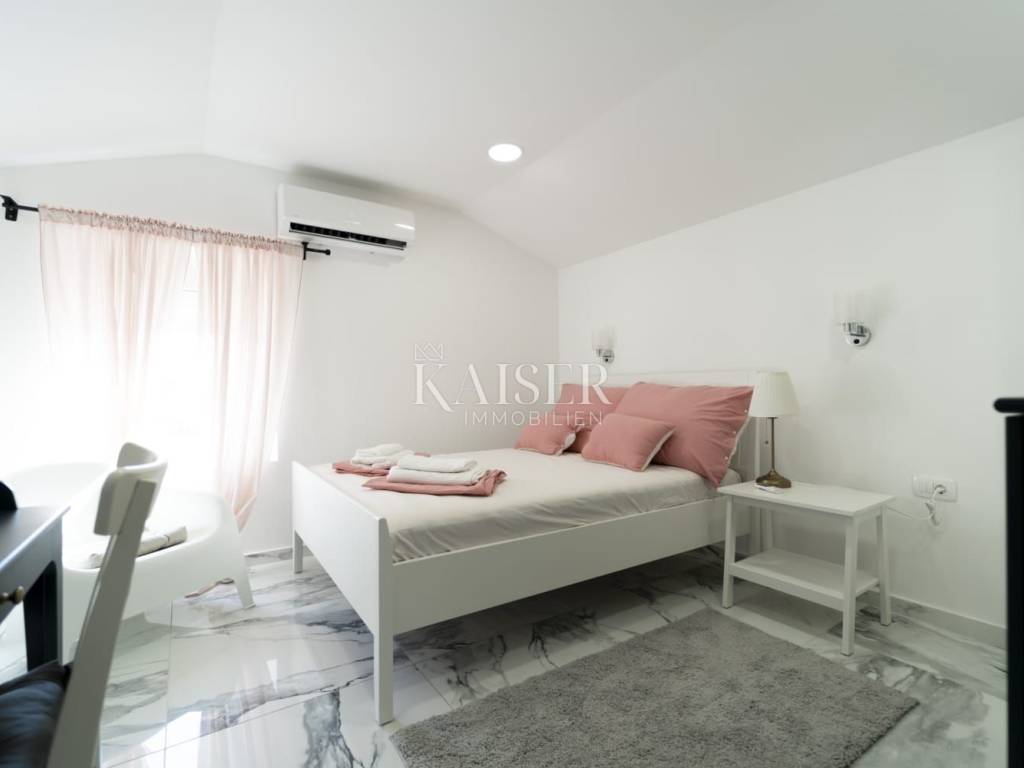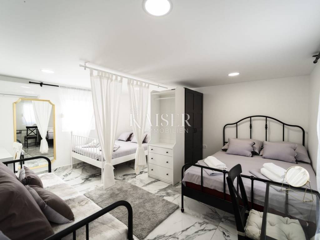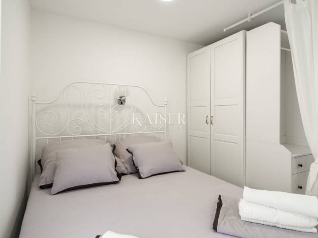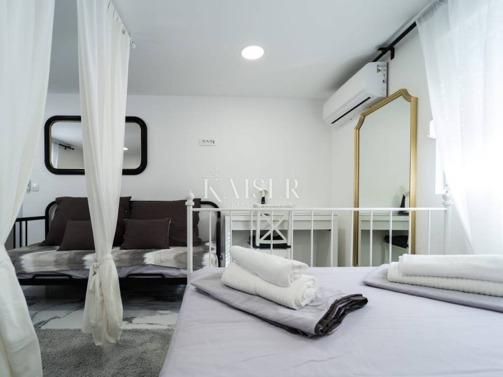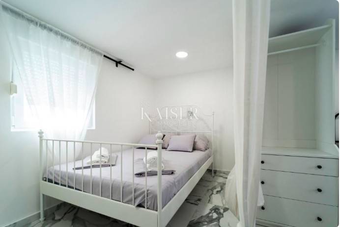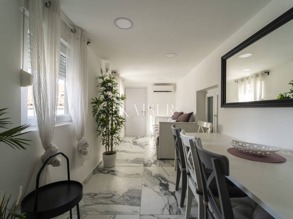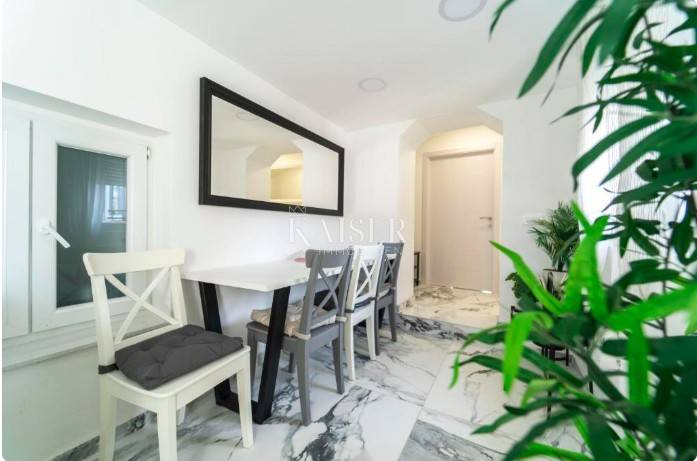 Poluotok – the historic old town of Zadar Elegance, character and Mediterranean charm in one living space In the very heart of Zadar's Poluotok, in one of the most prestigious locations of the historic core, an elegantly decorated apartment is for sale that combines the authentic charm of old town architecture with modern comfort and a refined interior. The 76 m2 apartment exudes warmth, style and harmony, creating a pleasant feeling of home from the first moment you enter. It is located on the upper floor of a neat old town building in the pedestrian zone and offers an ideal balance between the vibrant energy of the city center and the tranquility of a private living space. A special value of the property is the fact that it is being sold fully furnished, which allows the new owner to use it immediately without any additional investments. Main features • Apartment area: 76 m2 • Sold fully furnished and ready to move in immediately • Three comfortable bedrooms • Bright and cozy living room • Fully equipped kitchen with dining room • Bathroom + possibility of creating an additional bathroom (by converting the storage room) • Neat and maintained building in the pedestrian zone of the old town Tourist profile and business The apartment is not used for living, but exclusively as tourist accommodation and is well-established, highly rated and extremely sought after throughout the year. It has been decorated and maintained with special care, which has been recognized by guests through excellent reviews and reputation. The new owner can continue the successful business without additional investments and without existing tenants. Details about the income potential are available only to serious buyers after identification of interest. Added value - exclusive potential The apartment has internal access to the roof space, which represents special potential - with appropriate reconstruction of the roof and decoration in accordance with regulations and permits, there is a possibility of creating an intimate outdoor oasis for enjoyment. Imagine your own corner in the open air, overlooking the rooftops of the old town and the sea - a rarity on the Peninsula and an opportunity that further increases the value and life experience of the property. Lifestyle & investment impression Here you are not just buying an apartment - you are buying a way of life. Morning coffee with the city noise, walks along Kalelarga, relaxation by the sea, proximity to cultural events, galleries, restaurants and historical symbols of the city... everything is literally at your fingertips. Due to its location, layout and developed rental market in this part of the city, this property represents an extraordinary opportunity for personal residence or for investors who recognize the value of the Zadar Old Town segment. If you are looking for a property that combines elegance, location, character and an authentic Mediterranean lifestyle - this is one of those rare opportunities on the market. Significant distances Beaches & localities: Nearest beach – approx. 10 min on foot Zadar Airport (Zemunik) – 12 km / approx. 15 min Port of Gaženica – 5 km Major European cities (by road): Ljubljana – 345 km Budapest – 630 km Vienna – 640 km Munich – 730 km Prague – 900 km The agency commission for the buyer is 3% + VAT and is paid in the case of purchasing a property, upon conclusion of the first legal act. ID:128-78 For more information and to arrange a viewing, please contact: Nina Fabijan +385 95 504 6197 nina@kaiser-immobilien.hr