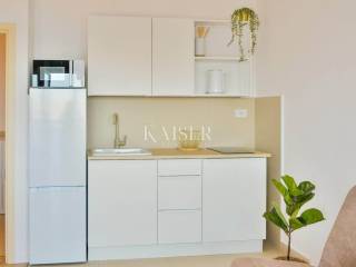 The apartment has 40.05 m² of carefully designed space, filled with natural light and decorated in warm, neutral tones. The living room connected to the kitchen and dining room creates an airy and pleasant atmosphere for everyday life, while the bedroom offers peace and privacy. Large windows further emphasize the proximity of the sea and create a feeling of openness throughout the day.