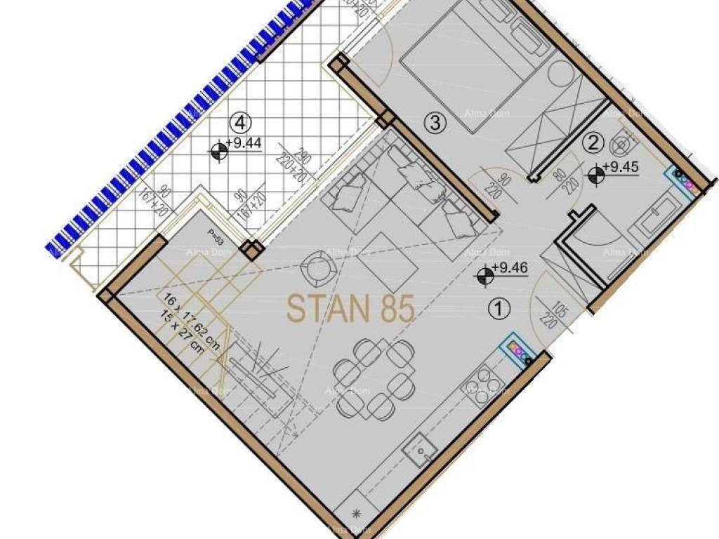 New on the market! We are selling apartments in Poreč.The building consists of two underground and three above-ground floors with galleries.This residential-commercial complex is of an open type, featuring underground garages, which will enhance the value and quality of services in this rapidly developing tourist destination.This apartment S85 extends from the third floor to the gallery. The two-level apartment on the first floor includes one bedroom, a kitchen with a dining area, a bathroom, a loggia, and a staircase leading to the second floor, where there is a hallway with stairs, a bathroom, a bedroom, and a rooftop terrace. The total net area of the apartment is 90.30 m².Note: The apartment includes a parking space, and a storage room is available for an additional fee.THE BUYER IS EXEMPT FROM PAYING TAX!For more information, please contact:Azra +385 91 611 5706 +385 98 420 885 azra@almadominvest.com