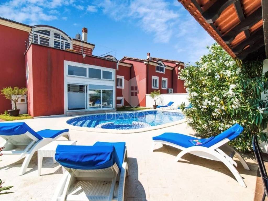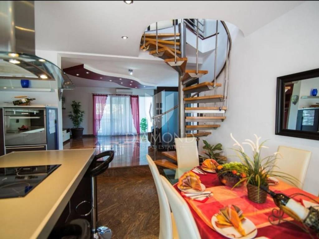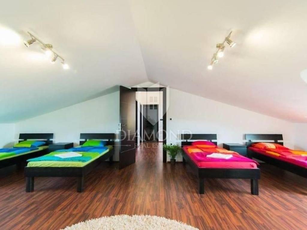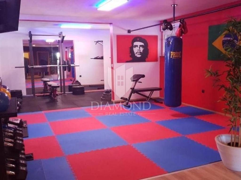 Pula, Istria This spacious house in Pula with its own pool, gym and garage is for sale. The house is spread over 3 floors, consists of 5 bedrooms, 2 living rooms, kitchen, 2 bathrooms, 1 toilet, garage for 2 cars and parking in front of the garage. In addition to the swimming pool, there is also a covered barbecue area in the garden. The building has achieved excellent results in tourist rental and is also an excellent choice for a family home due to the number of rooms.