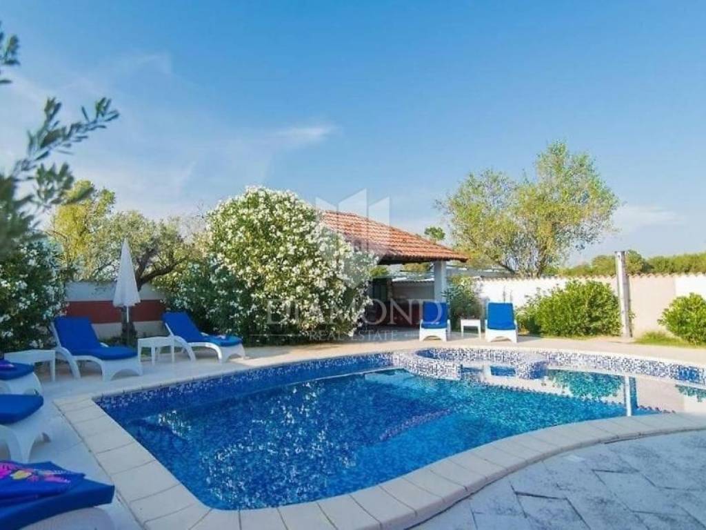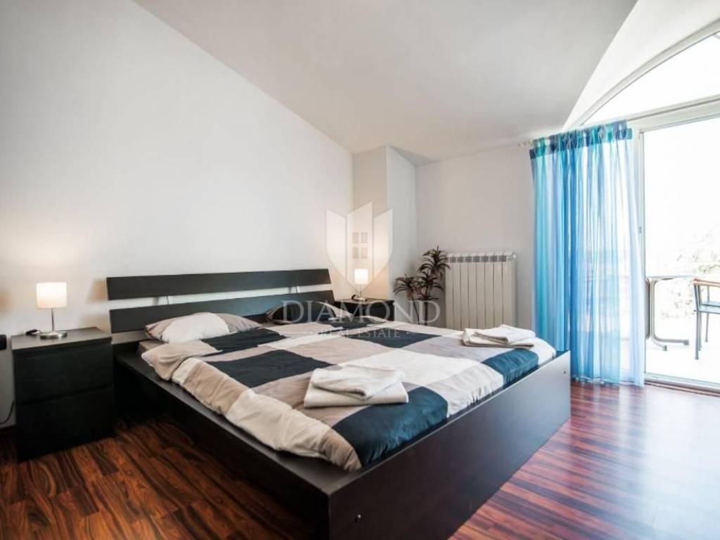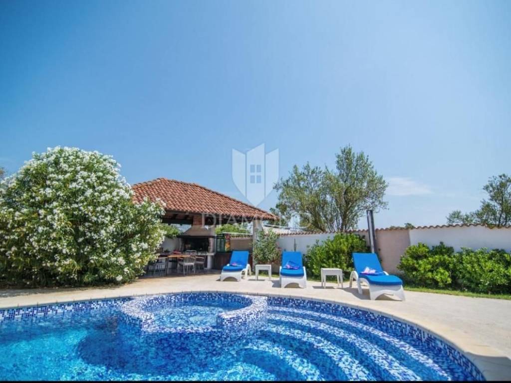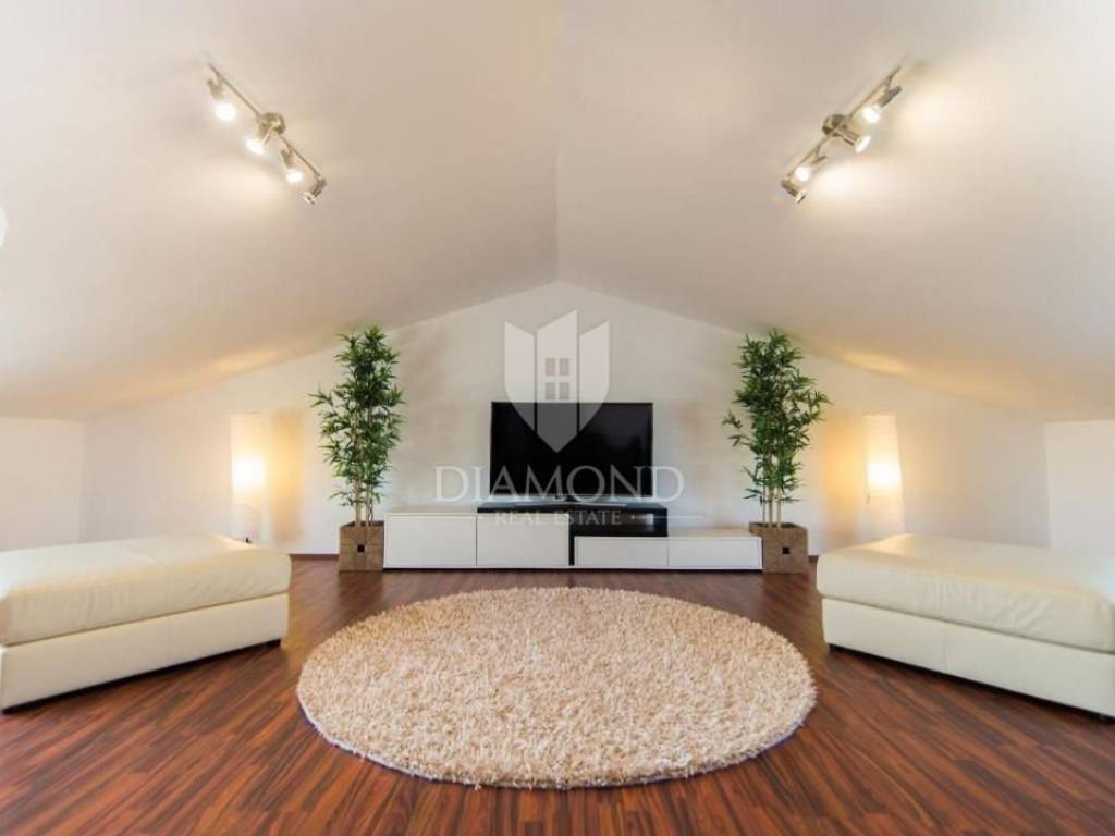 Pula, Istria This spacious house in Pula with its own pool, gym and garage is for sale. The house is spread over 3 floors, consists of 5 bedrooms, 2 living rooms, kitchen, 2 bathrooms, 1 toilet, garage for 2 cars and parking in front of the garage. In addition to the swimming pool, there is also a covered barbecue area in the garden. The building has achieved excellent results in tourist rental and is also an excellent choice for a family home due to the number of rooms.