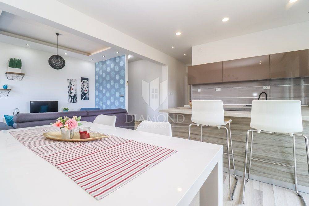 Modern furnished apartment in a newer building near Veli Vrh school, kindergarten, forest. It is only a few minutes' drive from the city center, as well as to the beach and the sea in Štinjan. Ideal for a family that wants a quiet life away from city noise and close to all amenities and one of the most popular schools in Pula.