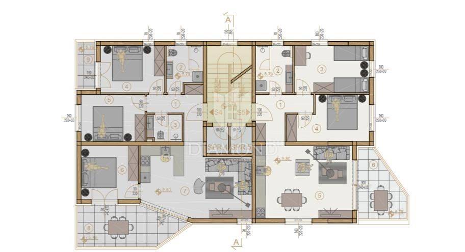 The apartment has a total net area of 80.61 m² and offers an extremely functional and pleasant living space. It consists of an open concept living room, kitchen and dining room, three comfortable bedrooms, two modern bathrooms and a practical storage room located in front of the entrance to the apartment. Its special feature are as well the two spacious terraces that can be accessed from the living room and two bedrooms - ideal for relaxing, socializing or enjoying the peace of your own corner outdoors. The interior is equipped with modern solutions such as underfloor heating in the bathrooms, electric shutters, PVC joinery with triple glazing and integrated mosquito nets, which further contributes to the comfort and energy efficiency of the home. The apartment also has two parking spaces - one covered, the other uncovered, which are included in the price.