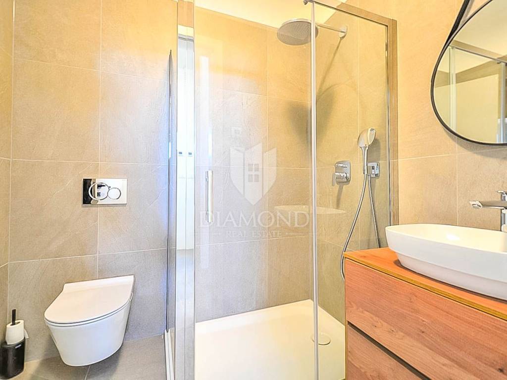 The apartment is located on the first floor of a building with five residential units and is less than 2 km from the city center and 1 km from the first beautiful beaches. Its surface is 64m2 and consists of a day and a night part. The night part consists of two 2 comfortable bedrooms and 2 bathrooms. The living area is dominated by a spacious living room, kitchen and dining room. From the living room there is a covered balcony of 11.94 m2. There is underfloor heating throughout the entire apartment, while each room is equipped with a separate air conditioner. The apartment is built with quality materials and has an A+ energy certificate. The apartment comes with two marked parking spaces as well as a storage room in the basement of the building.