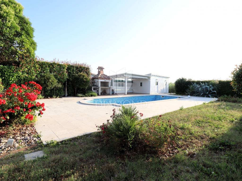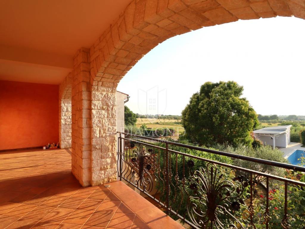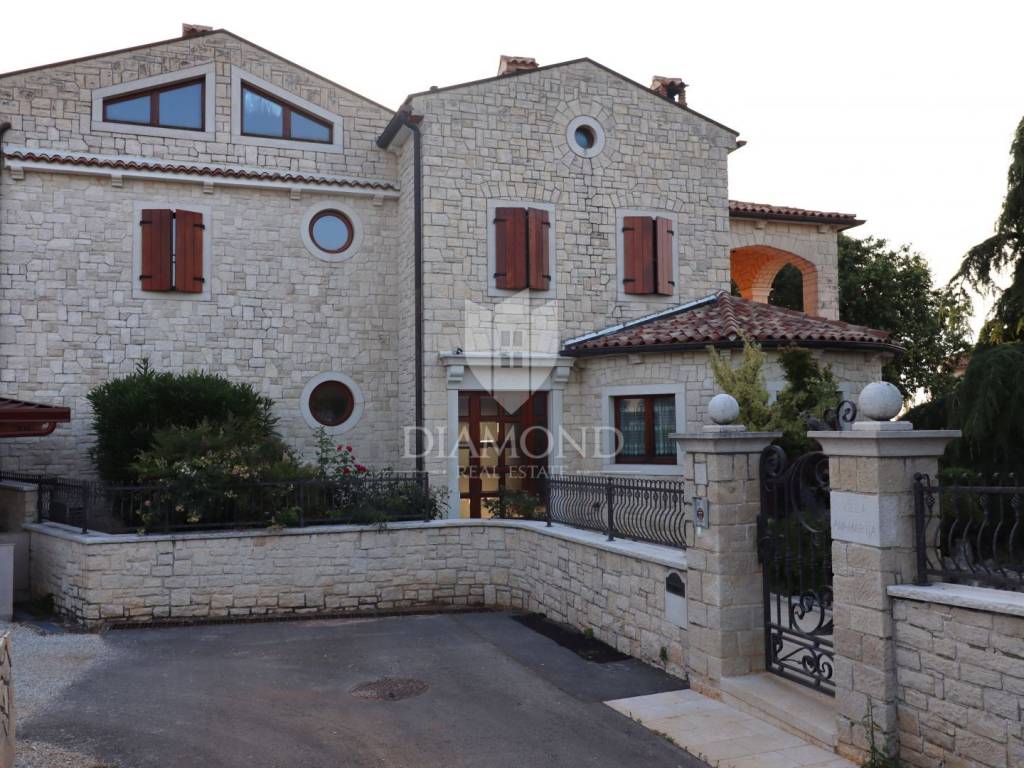 Stone villa with sea view - Poreč area In a quiet part of the Poreč area, just a few minutes' drive from the sea and beaches, is this charming stone villa that combines traditional Istrian architecture with great potential for decoration according to your own wishes. The villa is spread over four floors and offers spacious indoor and outdoor areas, including a tavern with a fireplace, a wine cellar, a sauna, several bedrooms and living areas with access to a terrace with a beautiful panoramic sea view. The garden has a swimming pool and a sunbathing area. The house is well-built, with pronounced stone details and preparation for the installation of an elevator. It is being sold unfurnished, and the new owner will need to invest in some refreshments and minor repairs, which provides an excellent opportunity to adapt the interior to their own standards. This villa is a great opportunity for those looking for an authentic property in Istria, with a beautiful view, a peaceful location and flexibility of decoration - whether as a private residence or a tourist investment.