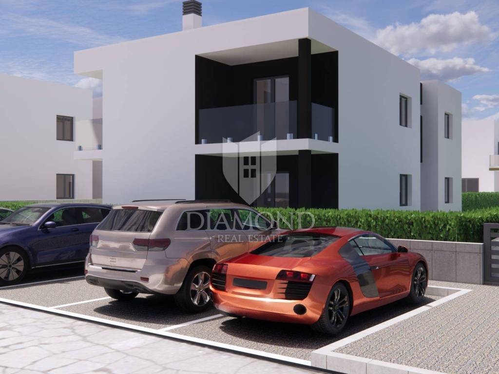 Poreč, excellent ground floor apartment with a garden, 1.5 km from the sea! In the immediate vicinity of the city center of Poreč is this modern building under construction with 4 residential units. The building is located in an attractive location a few minutes' drive from the first beautiful beaches and the city center. A ground floor apartment with a garden is for sale. The apartment has an area of 67.15 m2. The apartment consists of an entrance hall, a kitchen with a dining area and a living room in one unit, two bedrooms, one of which has access to its own terrace and a bathroom. The living area also has access to a covered terrace. The apartment also has a garden of 100 m2. The apartment has one parking space, and there is the possibility of purchasing another parking space for an additional fee. The apartment will be heated and cooled by fan coil units on a heat pump, and electric underfloor heating will be installed in the bathroom. The floor coverings will be made of high-quality Italian ceramics, and in this phase of construction the future buyer can participate in choosing them. Anthracite-colored aluminum electric shutters will be installed on all openings, and the insulation will be 10 cm thick. The planned completion of construction is by the end of 2025. The property is subject to VAT and the price is displayed with VAT. The property can be an ideal investment for family life as well as for tourist rent.