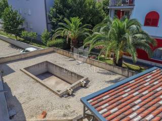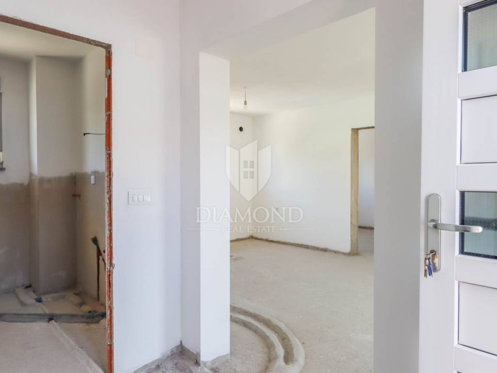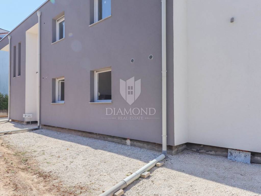 For sale is a modern house built in 2020, situated in a prime location on a quiet cul-de-sac in Rovinj, within walking distance of the beach and the Old Town. The house is of top-quality construction, with a total net area of 260 m², and is designed as three separate apartments. Each apartment features three bedrooms with en-suite bathrooms, a kitchen with a dining area, a living room, and a terrace.