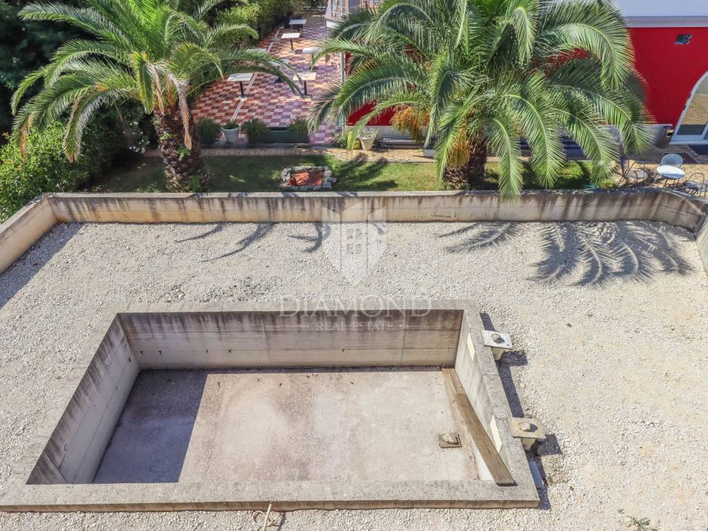 The outdoor area around the pool can be transformed into a true garden oasis with space for relaxation and socializing. This property is ideal for those looking for their dream home or a high-quality investment in one of the most desirable areas of Rovinj.