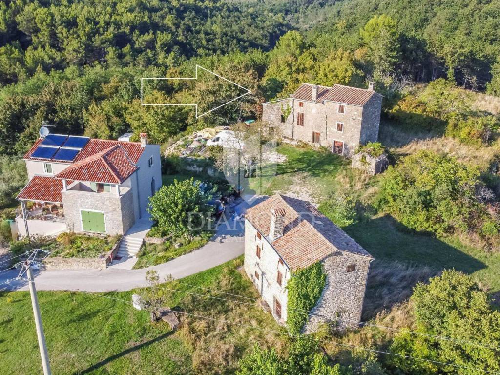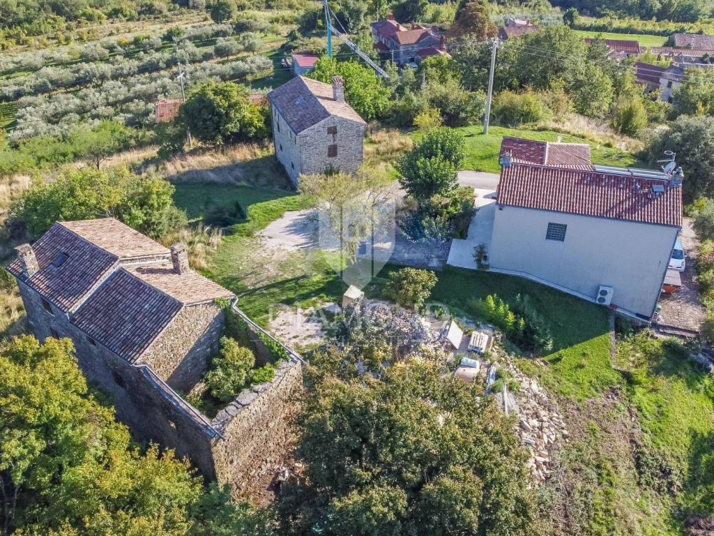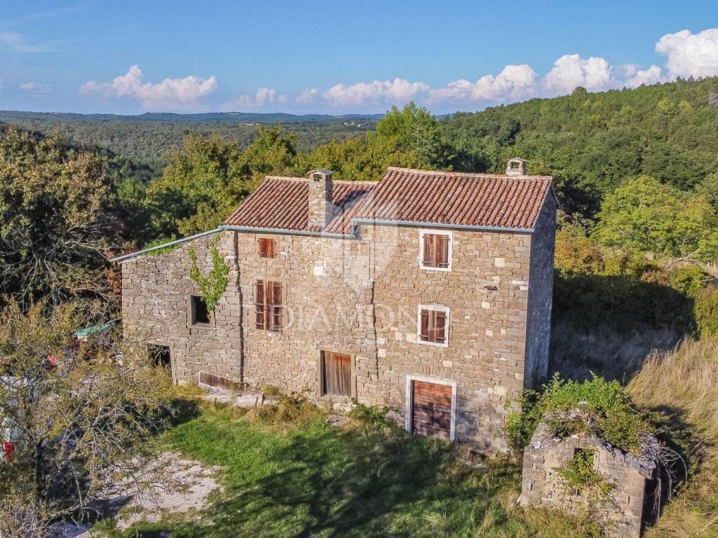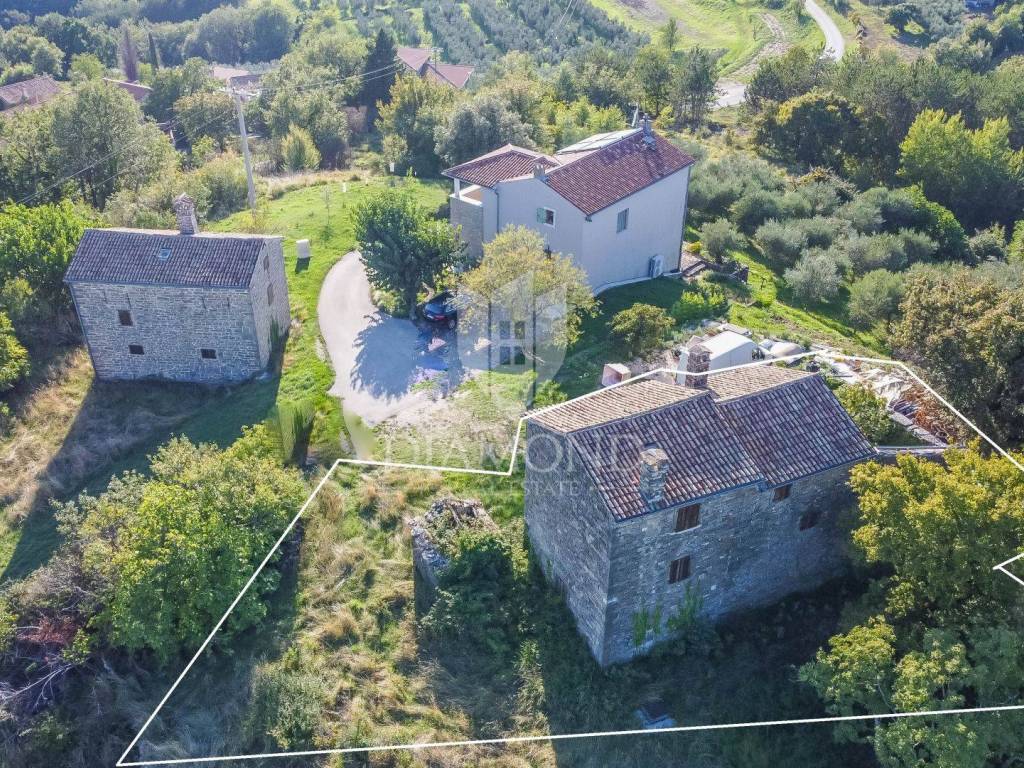 On the top of a hill, in the peaceful greenery between Krasica and Grožnjan, is this charming Istrian stone house that combines the authenticity of traditional construction and the charm of the Mediterranean landscape. It is made up of three connected houses with a total area of 120m2. The houses are located on a plot of land of over 600m2. The roofs and walls of two houses have been renovated to retain the spirit of their time, and the open view of the undulating Istrian panorama and the sea in the distance makes this property truly special. Access to the house is via an asphalt road.