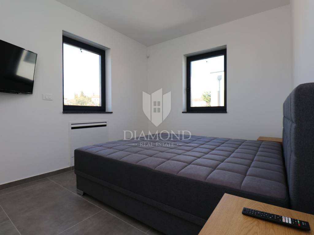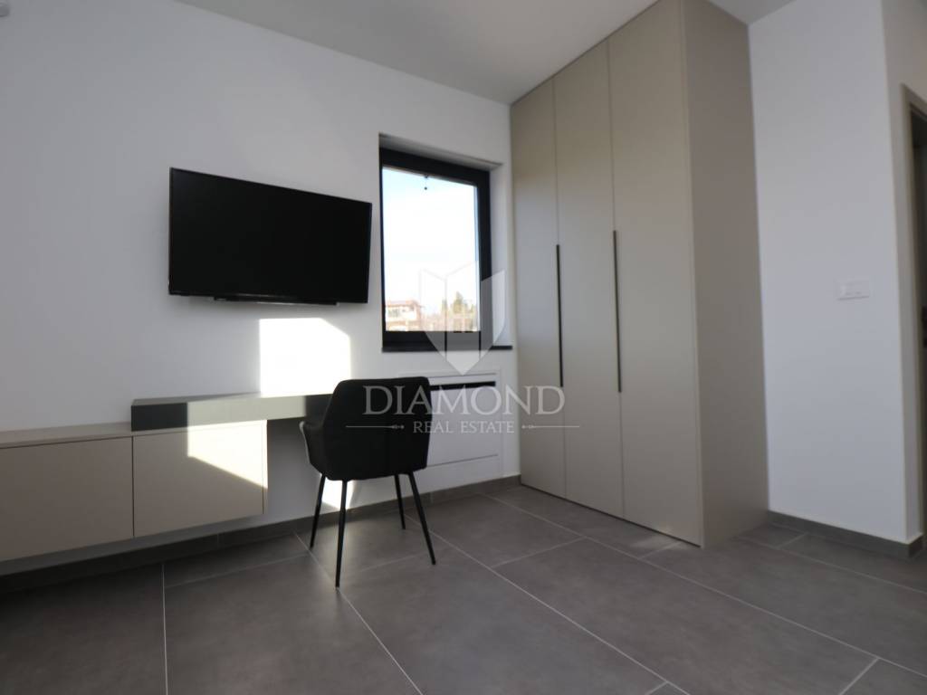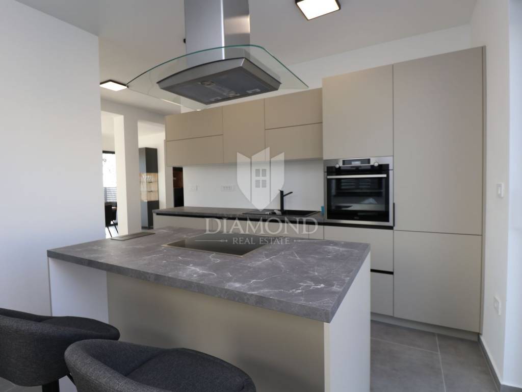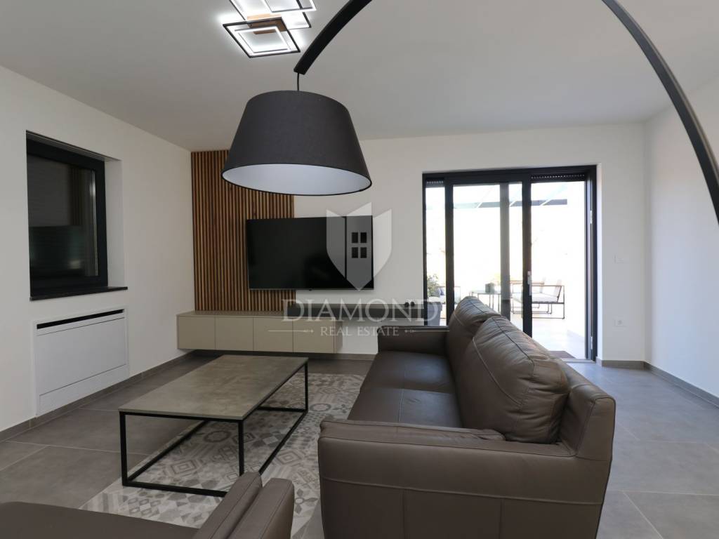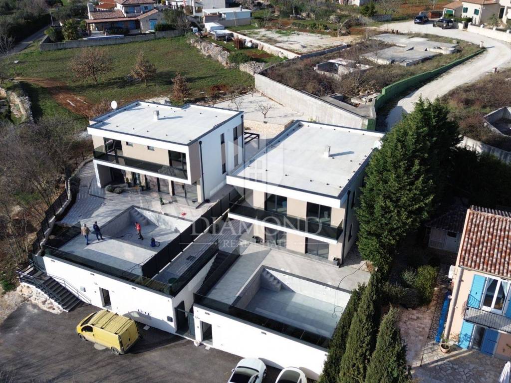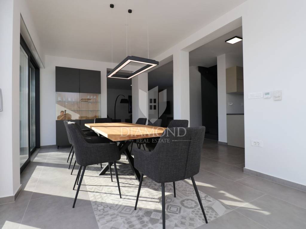 For sale is an imposing, brand new villa that fascinates with its modern design and luxurious amenities, located in beautiful central Istria. This villa provides ultimate comfort and elegance and represents an ideal home or an extraordinary investment opportunity in one of the most sought-after regions in Istria. The villa was carefully designed to combine functionality and aesthetics. The spacious living room with high ceilings and an airy space offers a spectacular view of the surrounding landscape and plenty of natural light coming in through the windows. The large kitchen is equipped with the latest appliances and modern elements, creating a perfect space for preparing and enjoying meals. Svetinčenat, surroundings, modern Villa with swimming pool The villa has several bedrooms, each of them designed with an emphasis on comfort and privacy. Each bedroom has its own spacious bathroom equipped with luxurious details and elements. But the highlight of this villa is the beautiful outdoor space. A spacious terrace with a private pool provides an ideal environment for relaxing and enjoying the outdoors, with a beautiful view of the surrounding landscape. The pool is the perfect place to refresh yourself during hot summer days, while the surrounding garden is ideal for spending time with family and friends. The villa is located in a quiet and picturesque environment of central Istria, far from the hustle and bustle of the city, but still close to all important facilities and attractions that this region offers. This modern villa with a pool represents the pinnacle of luxury living in central Istria and offers a unique experience of comfort and elegance. It is ideal as a family home or as an investment that promises high profitability.