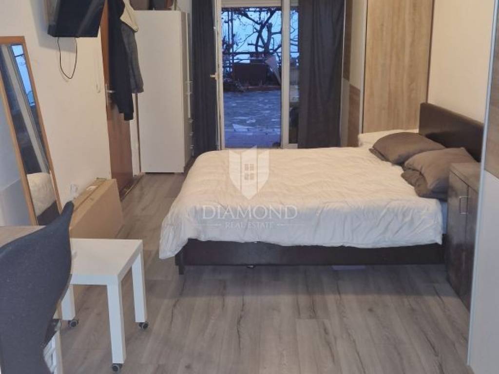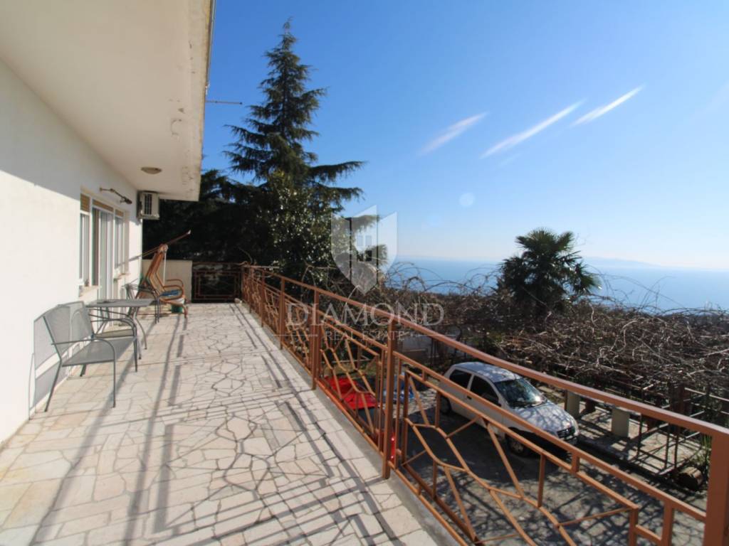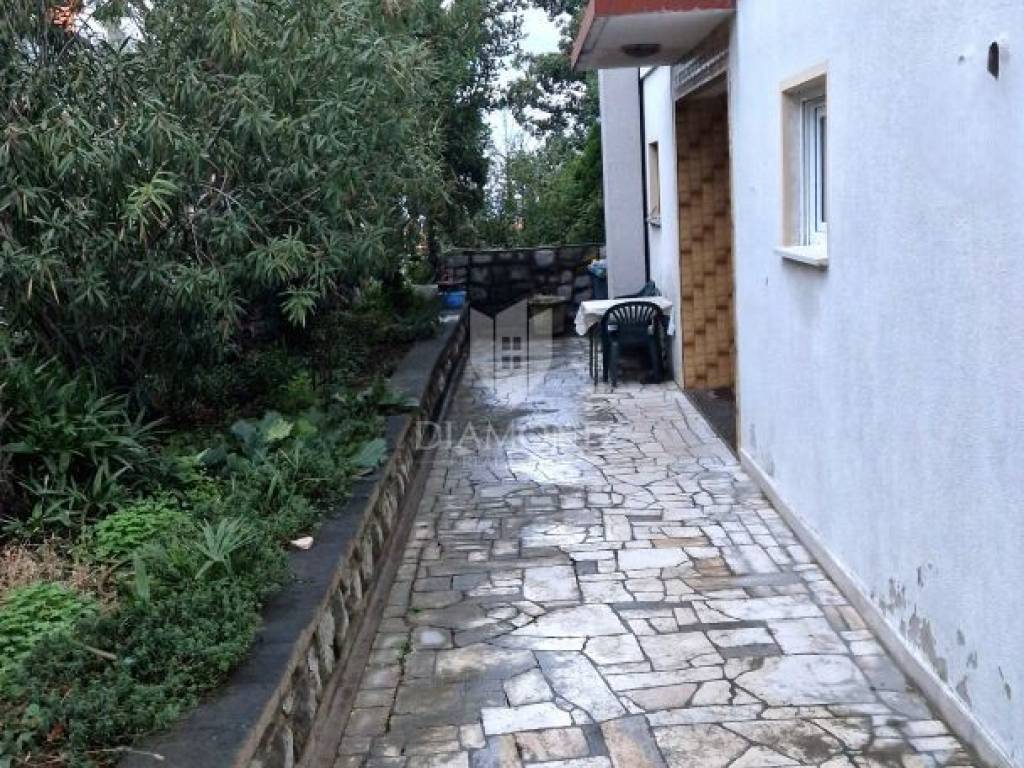 The ground floor and first floor form a spacious two-story apartment. The lower level consists of a kitchen with a balcony and storage room, a spacious living room connected to the dining area with access to the balcony, a bathroom, and an entrance hall. A beautiful solid wooden staircase leads to the upper floor, where there are four bedrooms and a bathroom. Two of the bedrooms have access to a balcony with a breathtaking panoramic view of Kvarner.