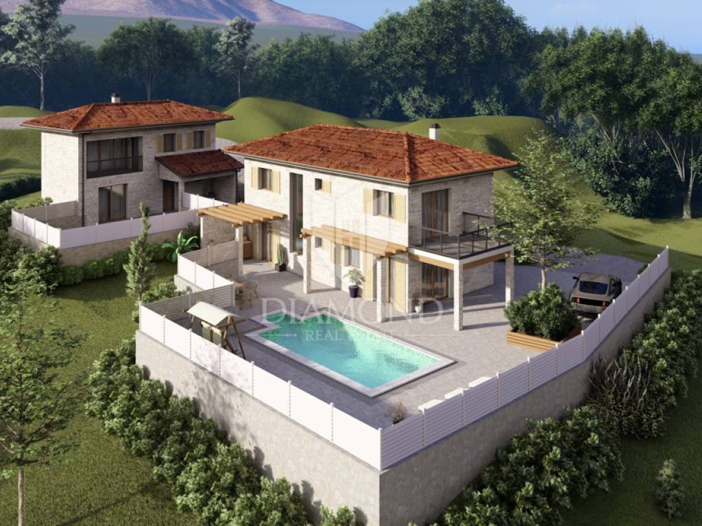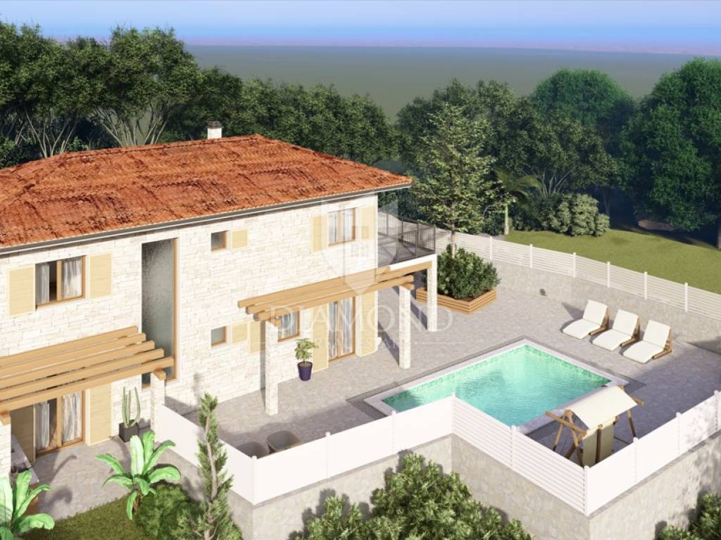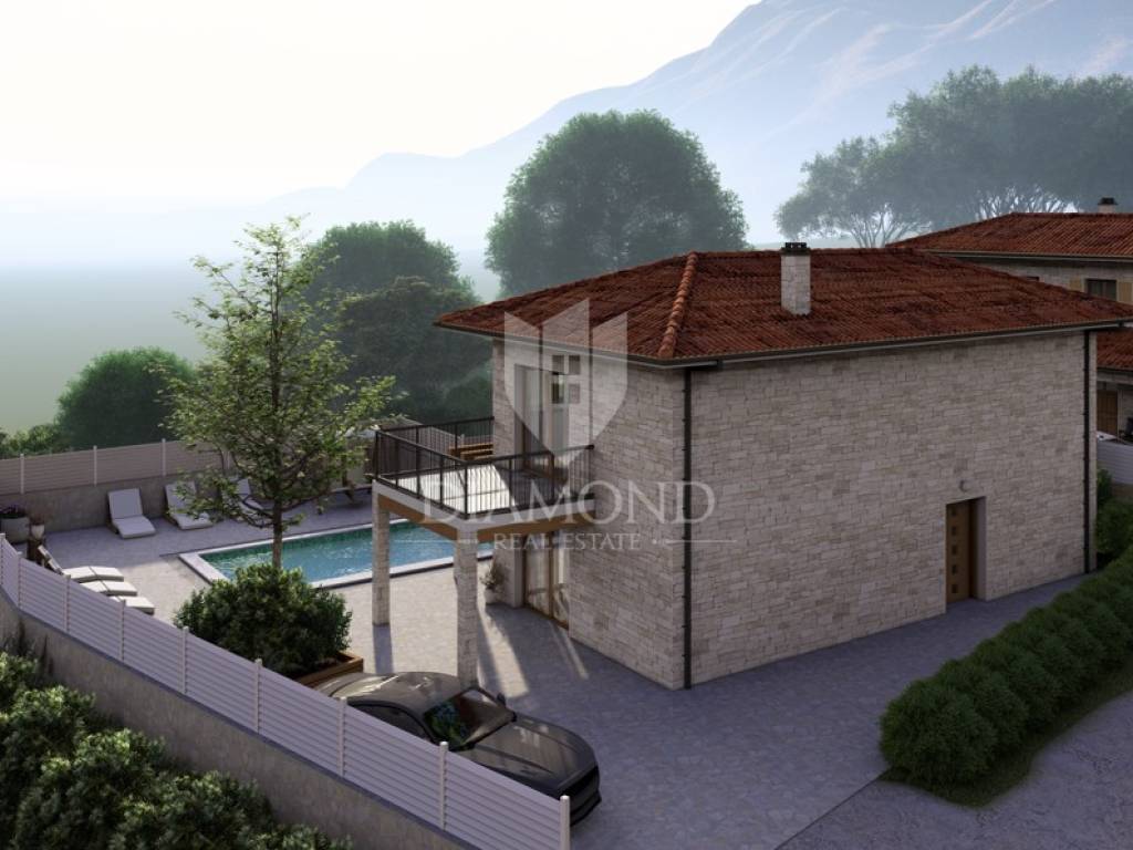The renovation plan combines traditional Istrian stone architecture with modern design, including a private swimming pool and a spacious terrace for full relaxation and enjoyment of the surrounding landscape.