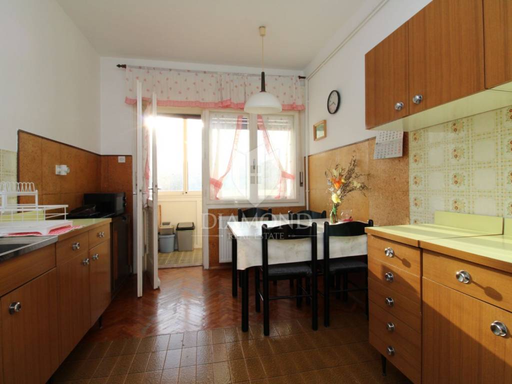 The apartment on Donja Vežica, with a surface area of 96 square meters, is located in a house with a spacious garden of just over 800 square meters, shared with the residents.