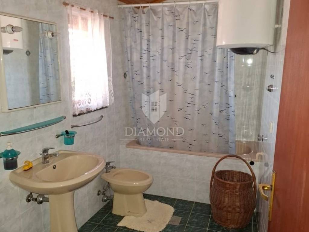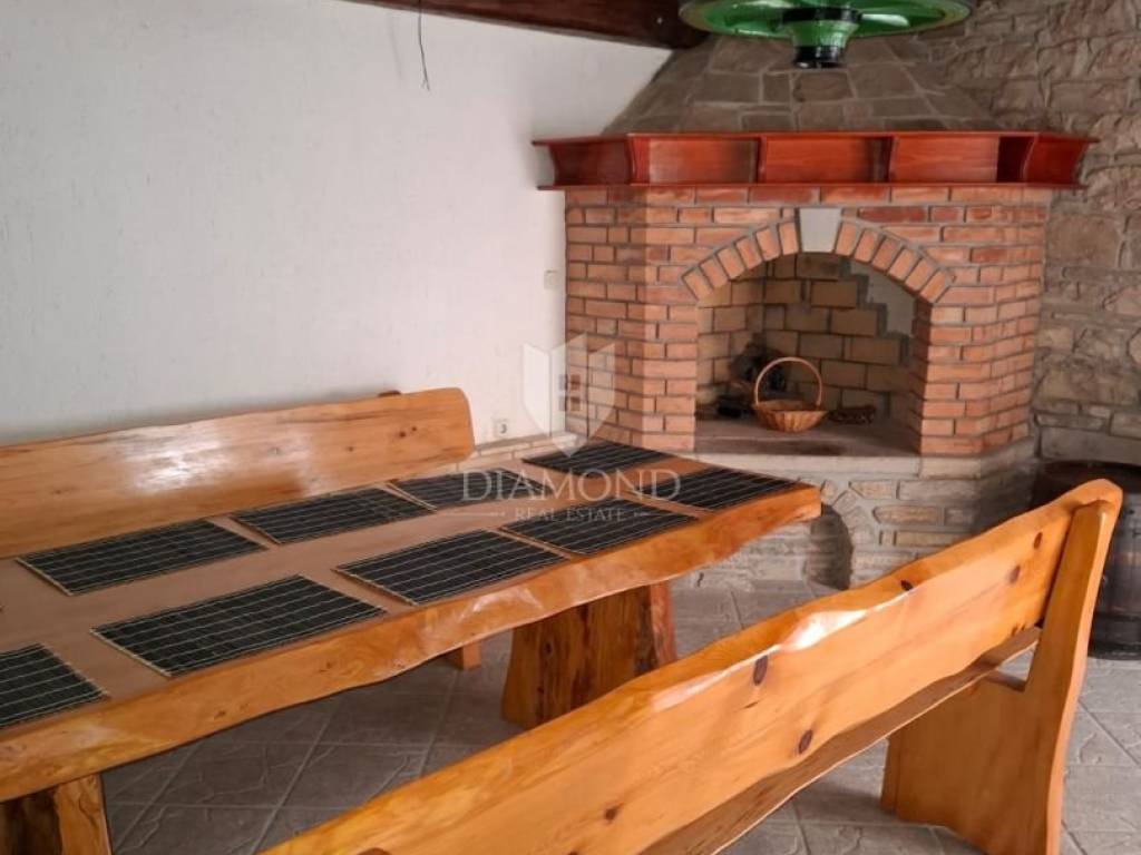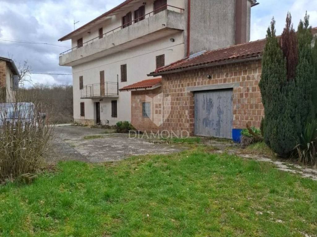 In the vicinity of Pazin, in a small Istrian village, we are selling a property. The property consists of a residential building of 142 m2, a farm building of 33 m2, another farm building of 174 m2 and a large garden of 2300 m2. The main building itself is designed on three floors. On the ground floor there is a decorated tavern with a kitchen and a room, and a large garage leans against it. On the first floor we have a living room, a bathroom and two bedrooms. The stairs lead us to the second floor, which has been renovated with a concrete slab and a concrete roof and has a living room, dining room, bathroom and two bedrooms. The sewage system has passed through the place. Clean ownership, neat papers. Ideal for investors. For family life but also for rent. All other buildings can be converted into residential spaces, which gives you enormous potential.