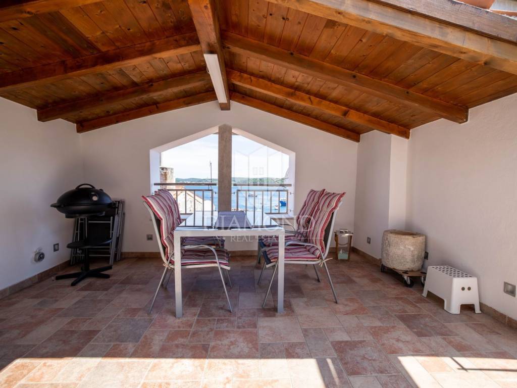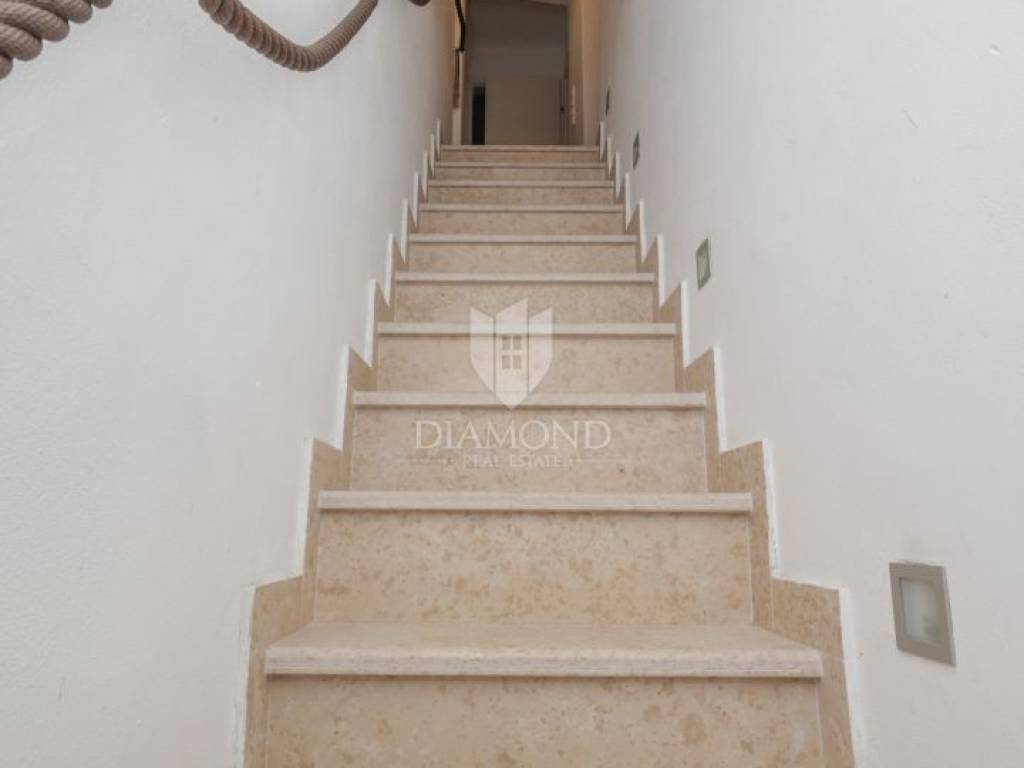 The house's greatest advantage is the beautiful and spacious terrace with a sea view. The attic space is cleverly utilized, featuring a living room and kitchen at the entrance, leading through large balcony doors to the terrace. The terrace includes a large jacuzzi with a direct sea view. Can you imagine holding a glass of wine and enjoying the view? If you can, don’t miss this opportunity. This house is a true example of quality restoration and owning a real gem in such a sought-after city on the Adriatic.