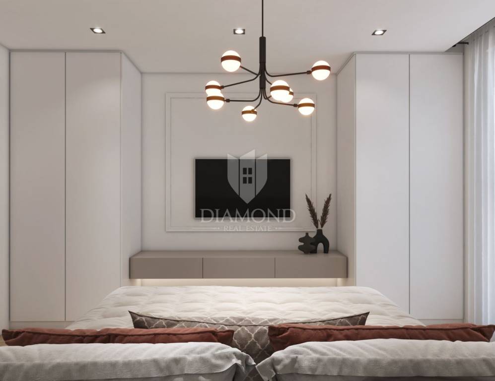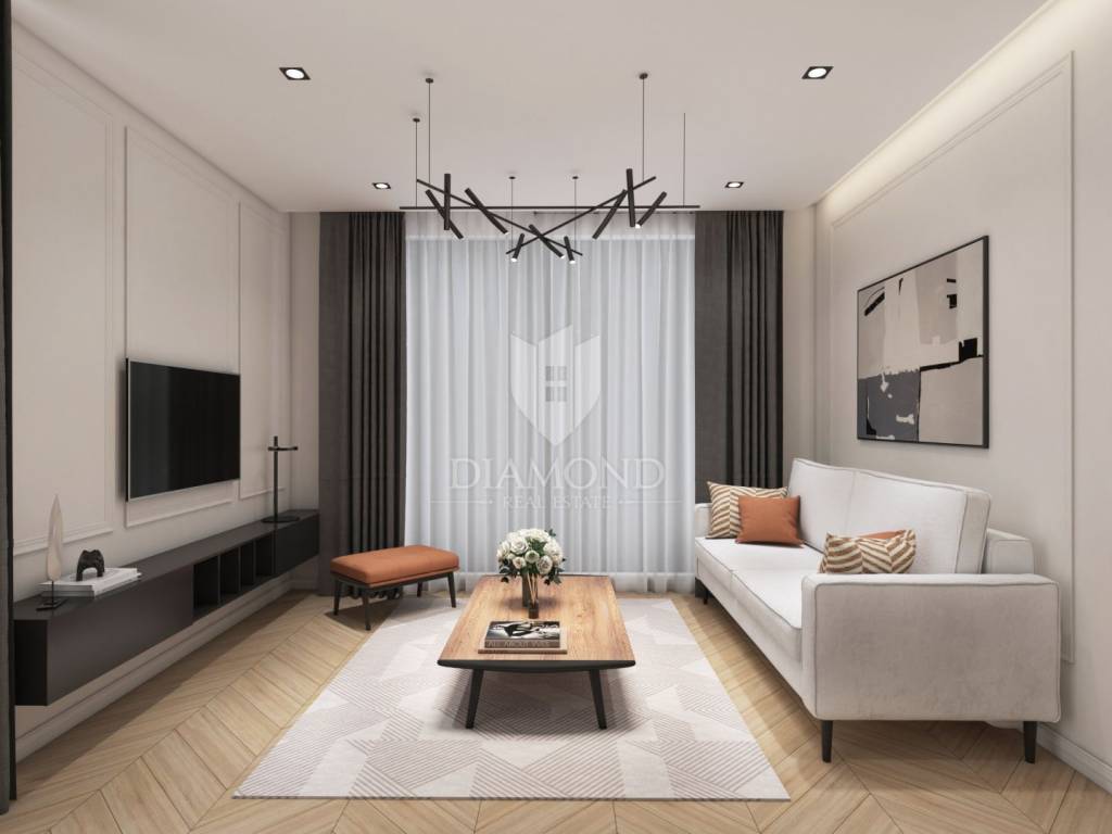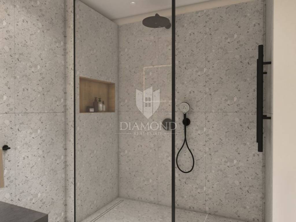 The apartment is located on the ground floor of a new building and offers everything you need for a comfortable lifestyle. It consists of one bedroom, a modern bathroom and a living room with a kitchen and dining area. The living room opens onto a private garden, perfect for relaxing in the fresh air. PVC joinery with triple glazing and aluminum electric shutters guarantee excellent thermal insulation, while Mitsubishi air conditioners and electric underfloor heating with Wi-Fi thermostats ensure a comfortable temperature at all times. Marca Corona ceramic tiles complement the sophisticated interior.