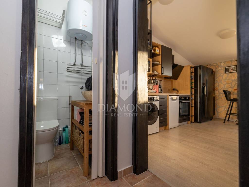 For sale is a modern, fully furnished apartment located on the first floor of a small residential building with a total of five apartments. The surroundings are exceptionally peaceful and quiet, offering perfect conditions for relaxation and escape from city life. The apartment has 40 m² of usable living space and is tastefully and modernly designed. It consists of an entrance hall, a bathroom with shower, a separate bedroom, and an open-plan living room with kitchen and dining area, with direct access to the terrace.