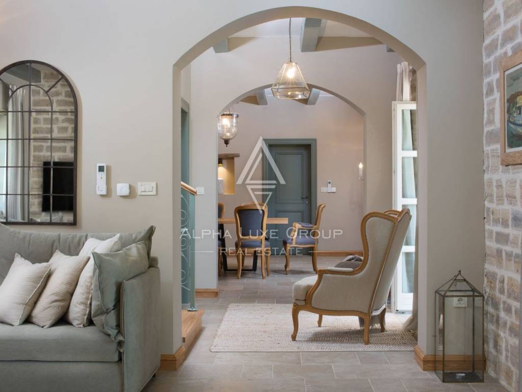 Discover an exquisite villa in the serene vicinity of Kanfanar, Istria, a mere 23 km from Poreč and 26 km from the picturesque Rovinj. This luxurious property, boasting a living area of 372 m2 and a sprawling garden of 1611 m2, is an epitome of vintage elegance and spaciousness, ideal for grand family events.