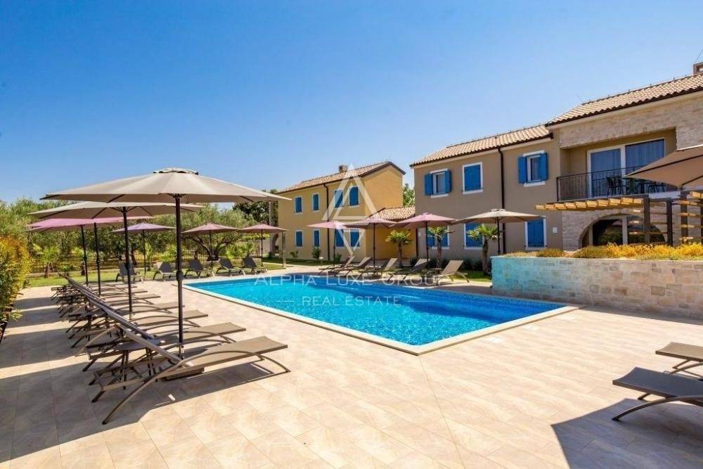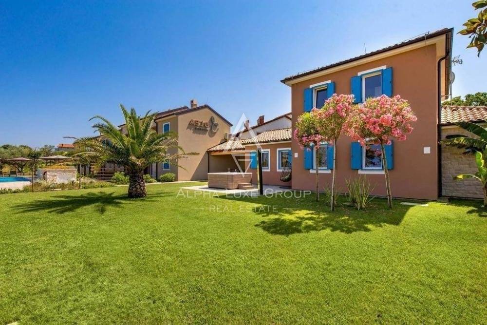 On a plot of 2,051 m2 and a living area of 800 m2, the apartment complex is selling. It includes one villa with two bedrooms, two apartments with two bedrooms each bedroom, and four one-bedroom apartments. It can accommodate up to 36 people at one time. A large swimming pool, hot tub, kids' playground, parking lot, and other attractions are available.