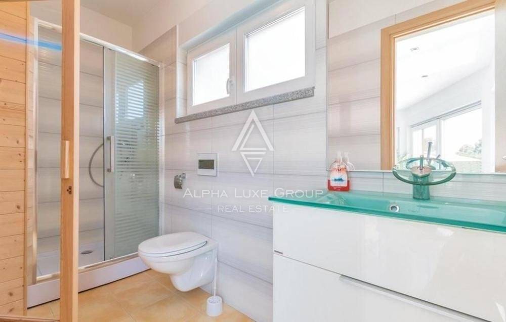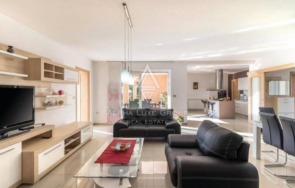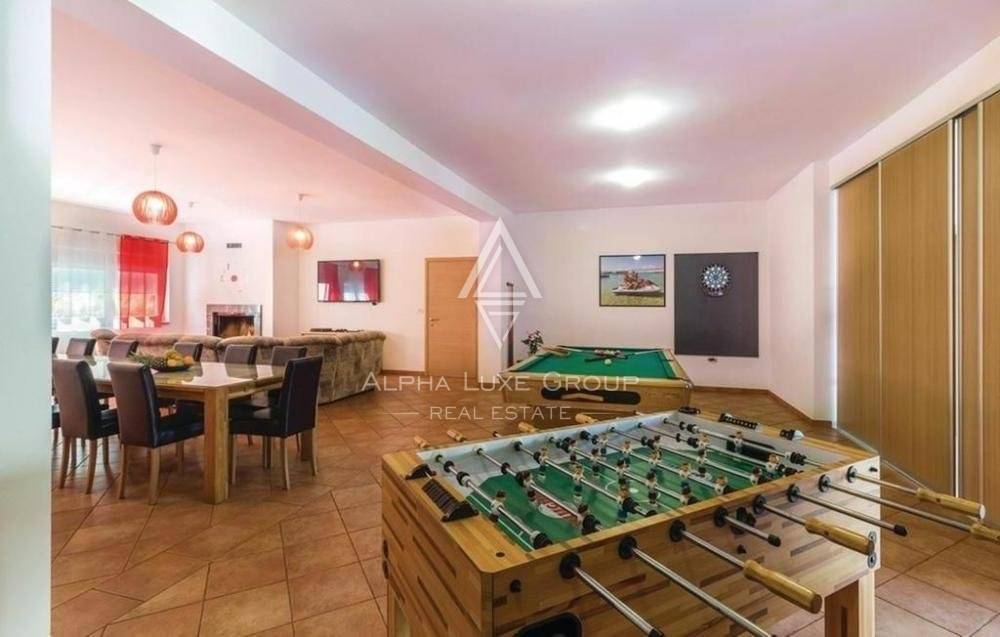 The house is exceptionally comfortable, stylishly decorated, and adapted to the modern way of life. There are football goals, a trampoline, a swing, and a fireplace on the lawn. It has a living area of 460 m2 and a yard space of 565 m2.