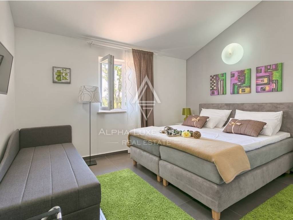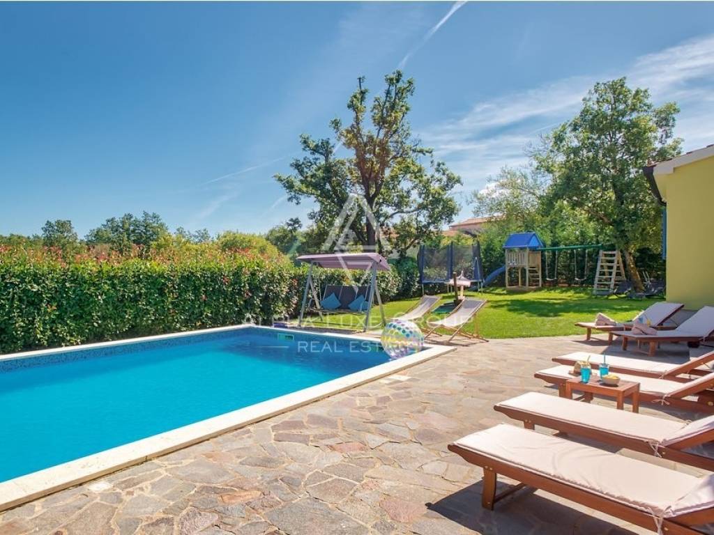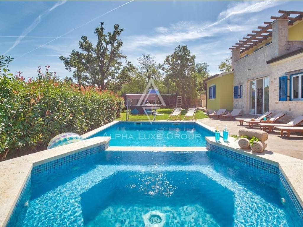 This lovely house with a pool is located in a small town just a ten-minute drive from the famous tourist city of Rovinj and 5 km from the medieval village of Svetvinčent. It is situated on a quiet street and surrounded by unspoiled nature, ensuring peace and escape from the hustle and bustle of the city.