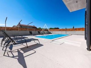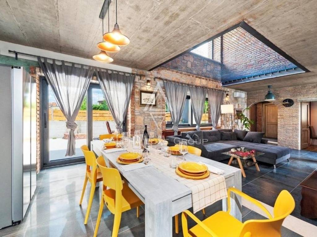 Nestled in the charming town of Kanfanar in Istria, this exquisite villa, formerly a rental property, is now on the market for sale. Boasting an impressive 200m2 of living space, this property is a testament to luxury living, set on a sprawling 600m2 plot. The villa's architecture is a seamless blend of modern comfort and traditional charm, spread over two levels.