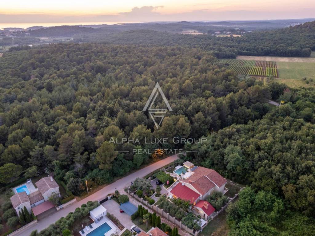 The villa is located in a beautiful quiet location only 3 km from the Green Lagoon Porec and 6 km from the center of Porec. It consists of a basement, ground floor, and first floor with a total of ​​360 m2 and 1200 m2 garden.