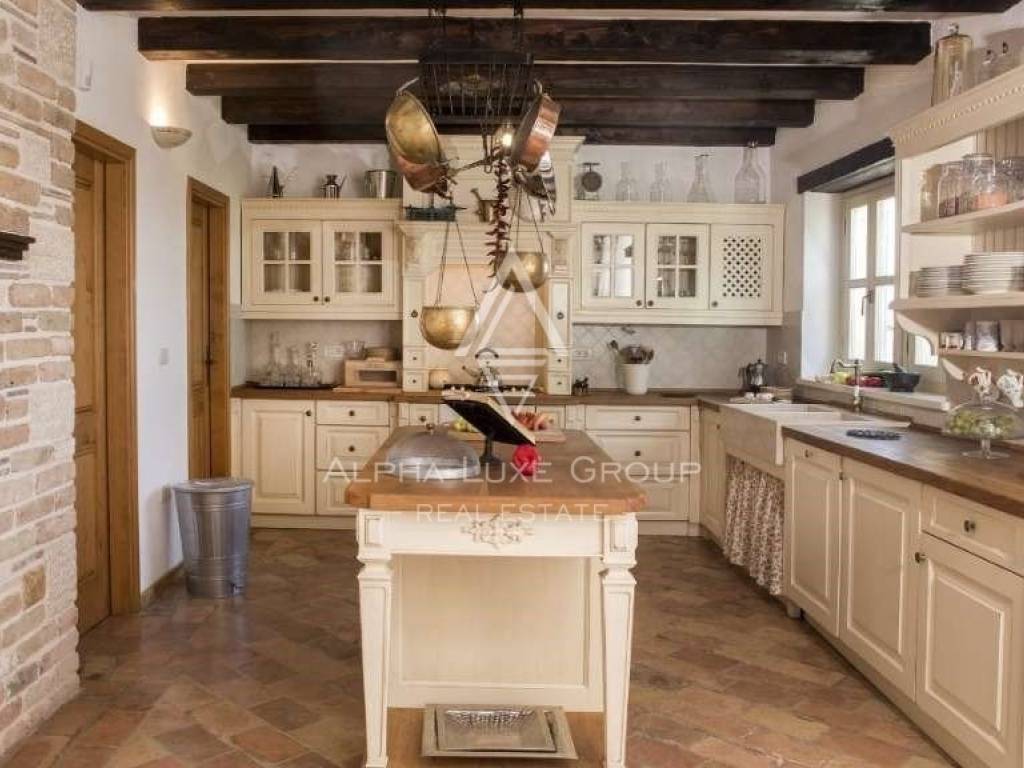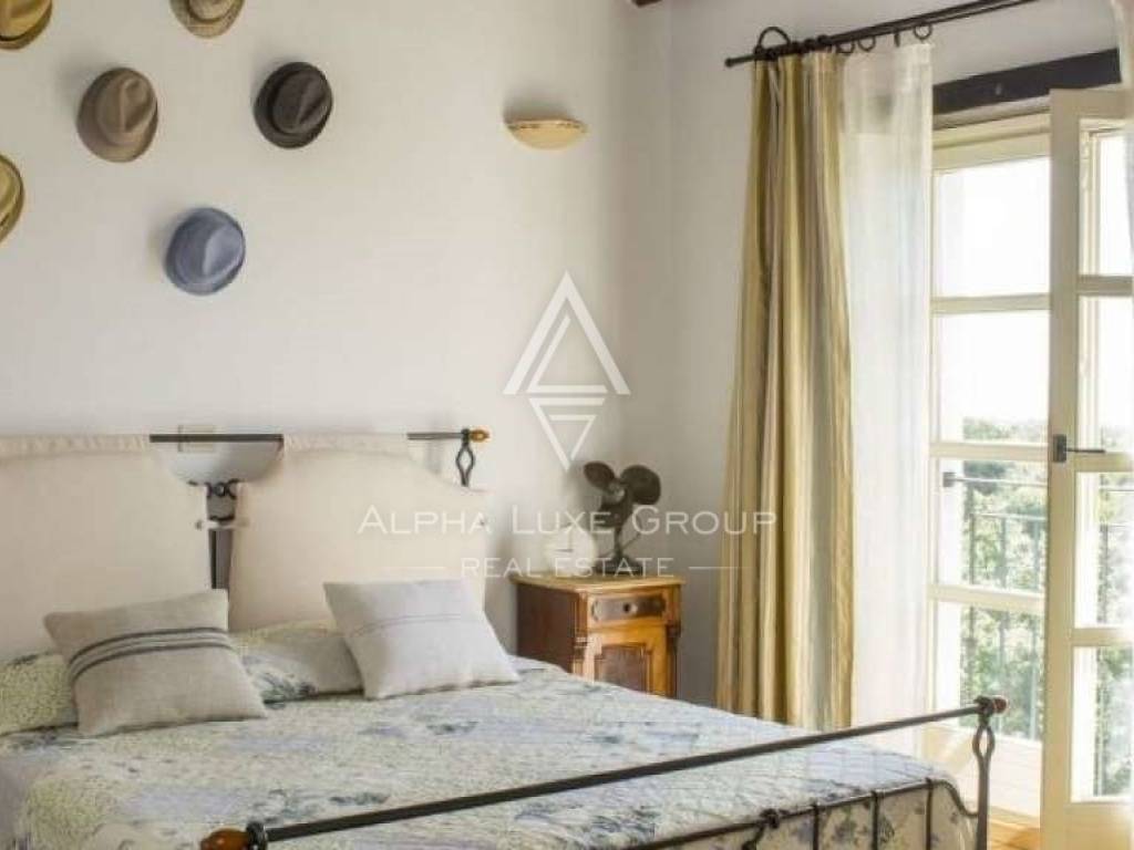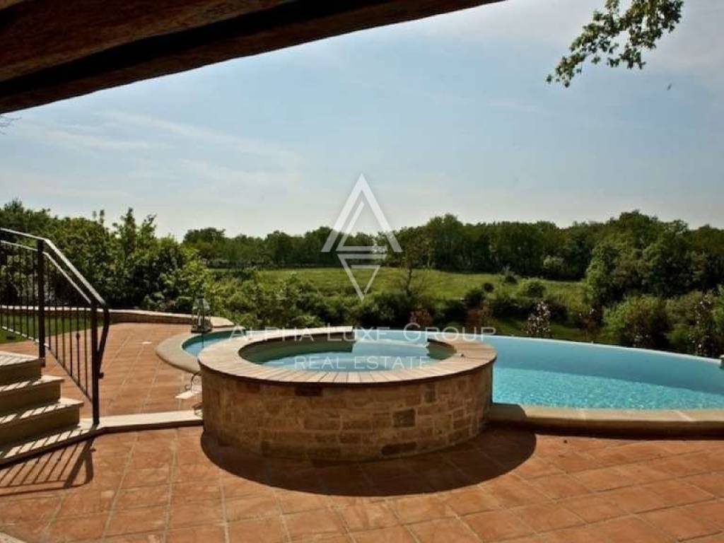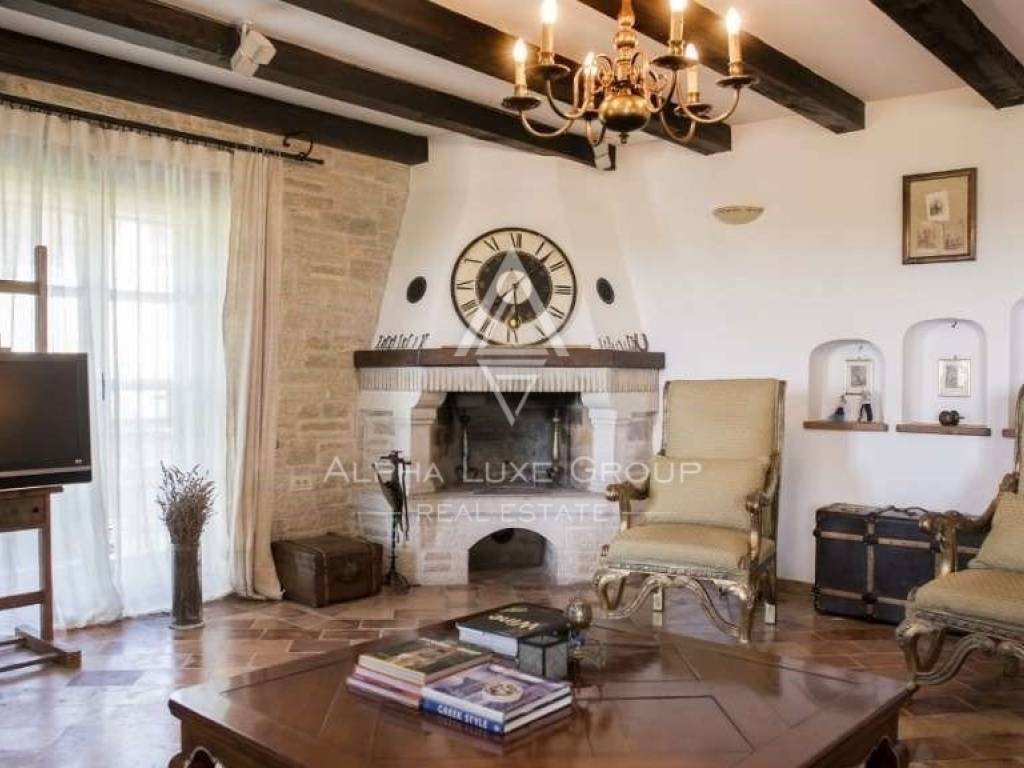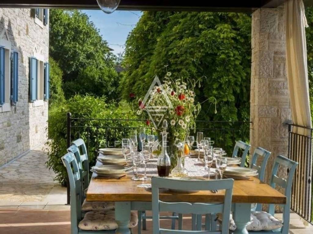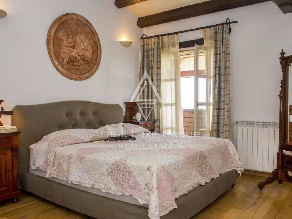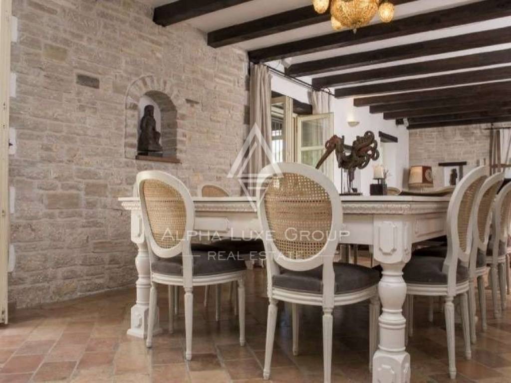 Three double bedrooms, each with its bath and dressing area, are located on the second floor. The covered terrace, which is on the west side and has a view of the sea and sunset and privacy and silence provided by nature, can be reached from the upper level via an exit. The house has been featured in numerous interior design journals and is one of Istria's most stunning houses.