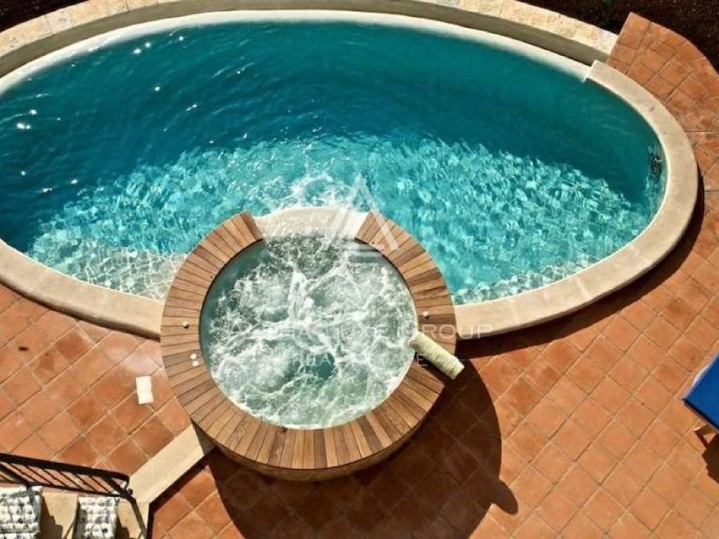 In front of the house, there is an oval infinity pool of 45m2 which has the possibility of countercurrent swimming and a whirlpool.