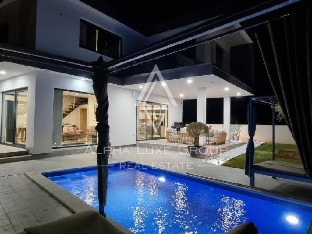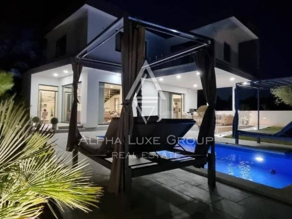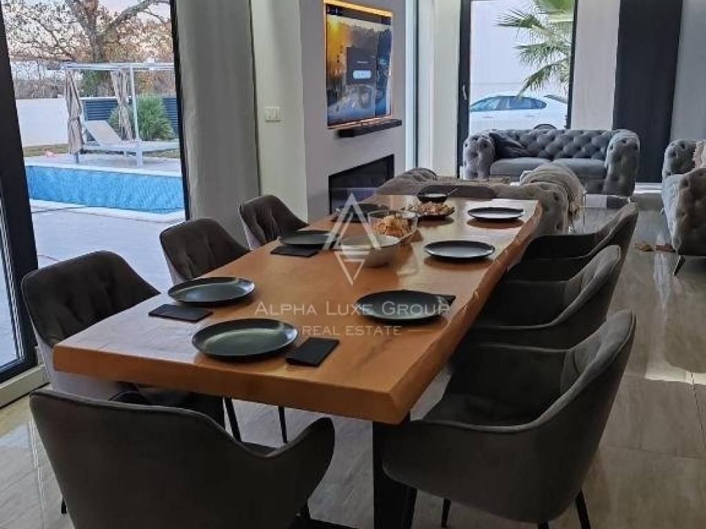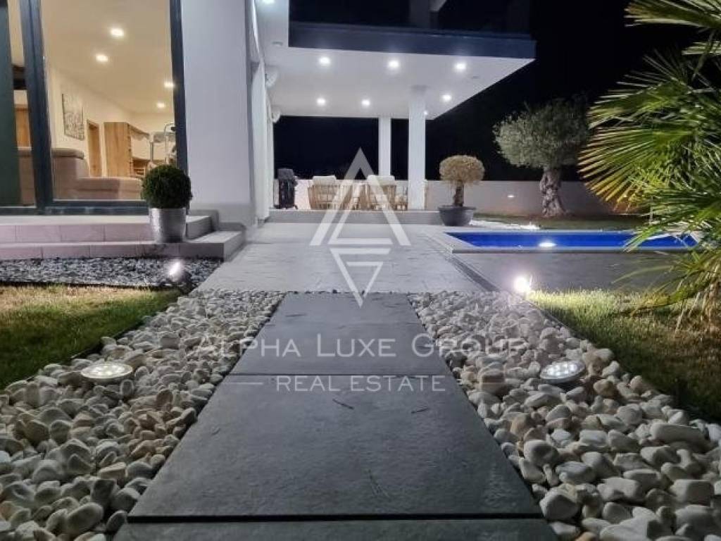Located in a serene village within the Svetvinčenat Municipality, this captivating modern villa spans 160 m2 across two well-appointed floors, nestled within a spacious and meticulously landscaped 643 m2 garden, rich in verdure. The property promises a blend of contemporary luxury and natural beauty.