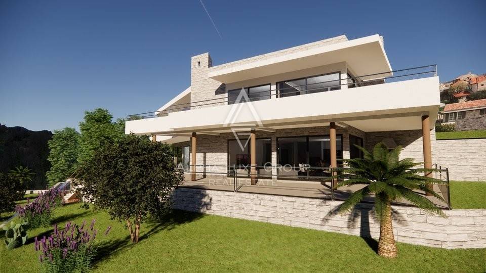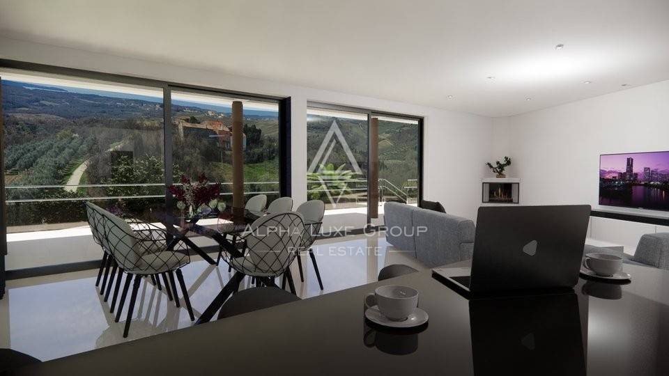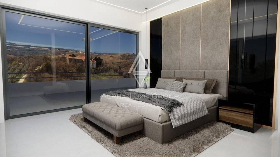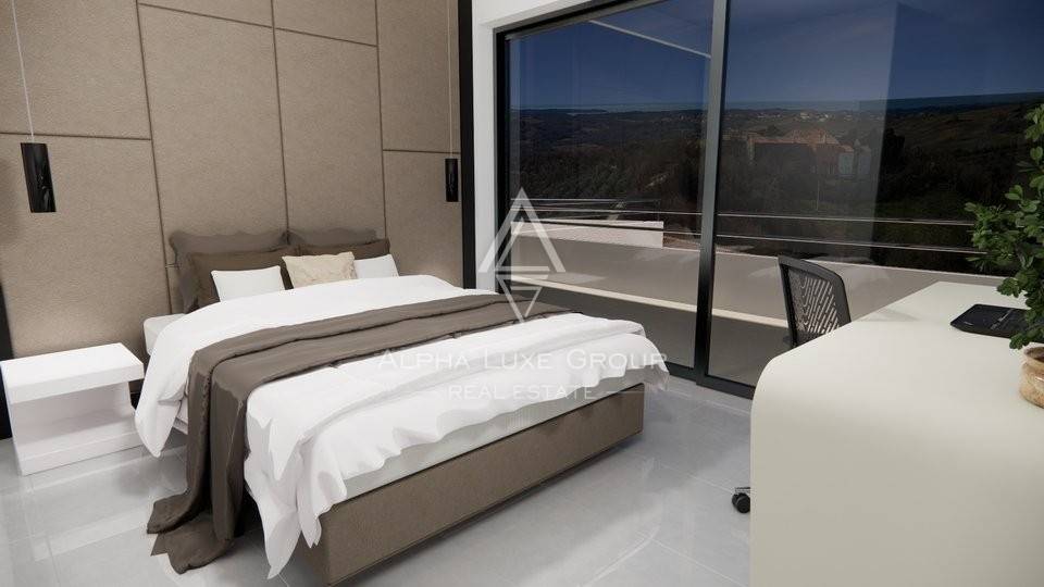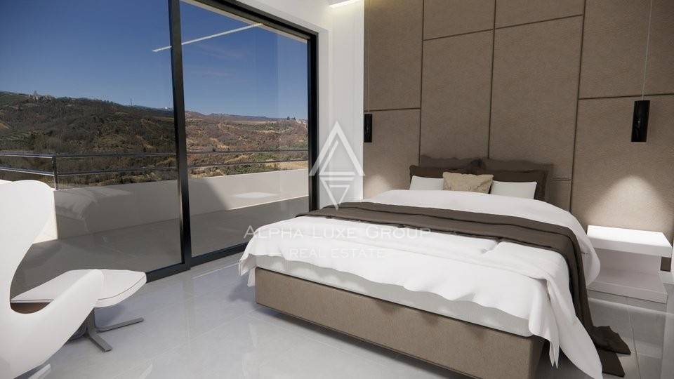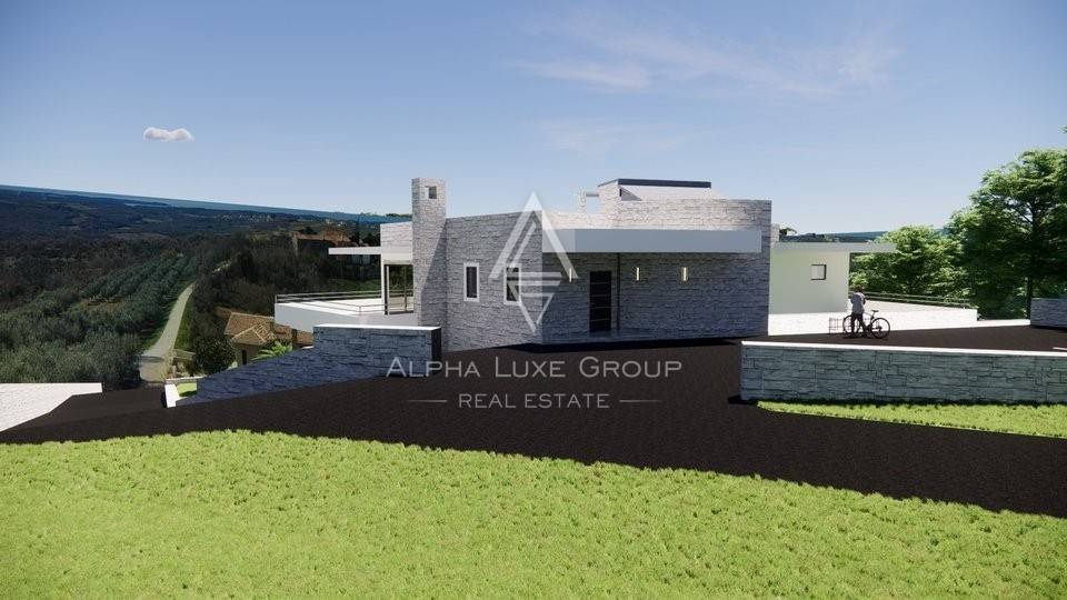 Immerse yourself in luxury with this newly built villa in Istria, offering panoramic views of the sea and the enchanting Istrian landscape. Currently under construction, this modern villa spans 430 m² over two levels, providing an opulent living experience.