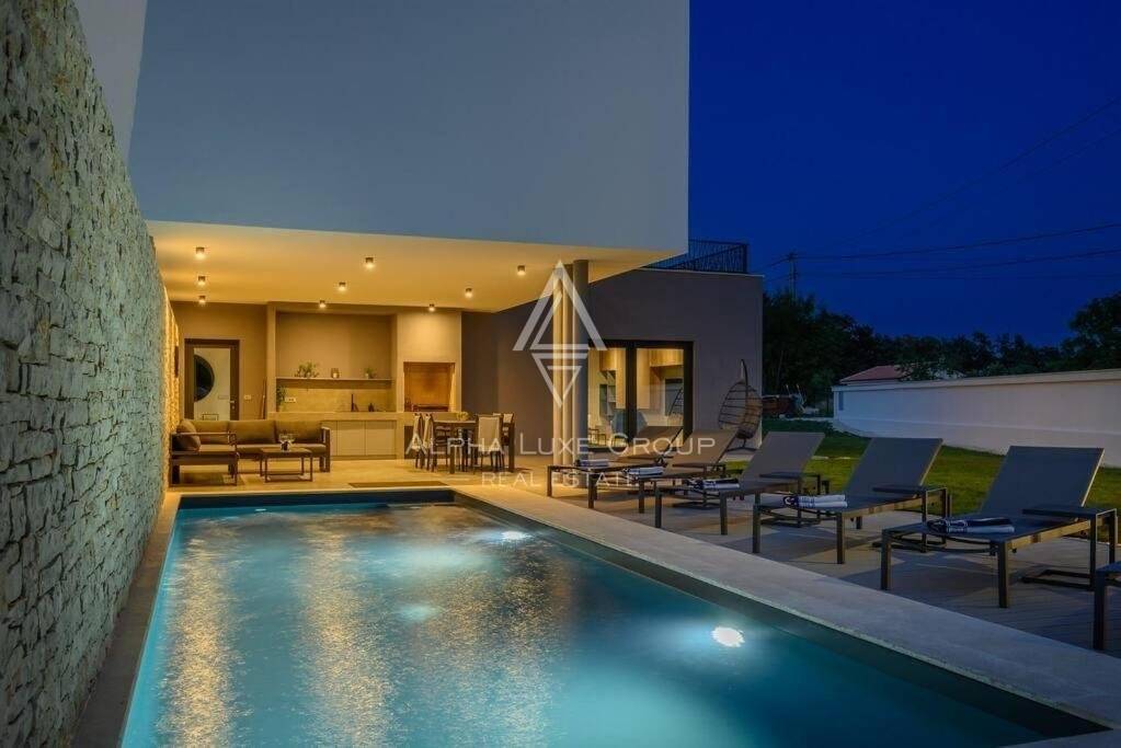 Located in the historic town of Svetvinčenat, a gem in the heart of Istria renowned for its vibrant cultural scene and historical sites, this newly constructed villa is a sanctuary of luxury and tranquility. Svetvinčenat is famed for its iconic Renaissance square and castle, setting a dramatic backdrop for the town's many festivals, including the Medieval Festival, the Cheese Festival, and the Non-Verbal Theatre Festival, drawing culture enthusiasts from across the region.