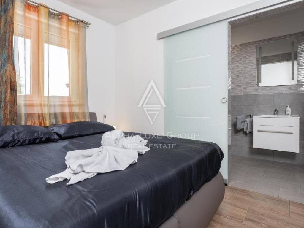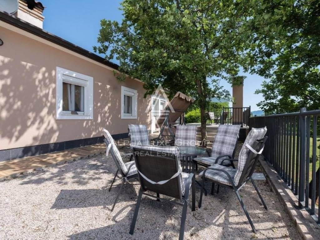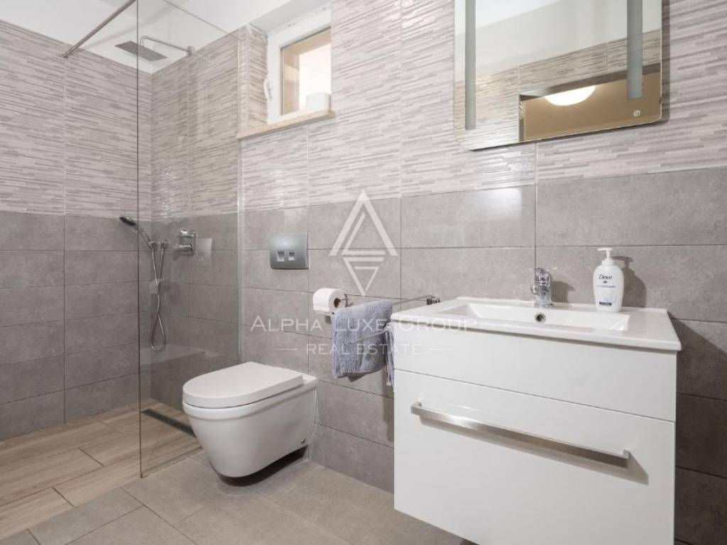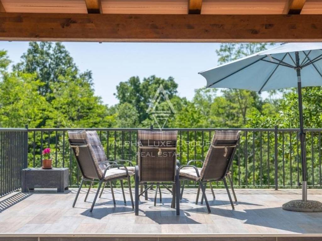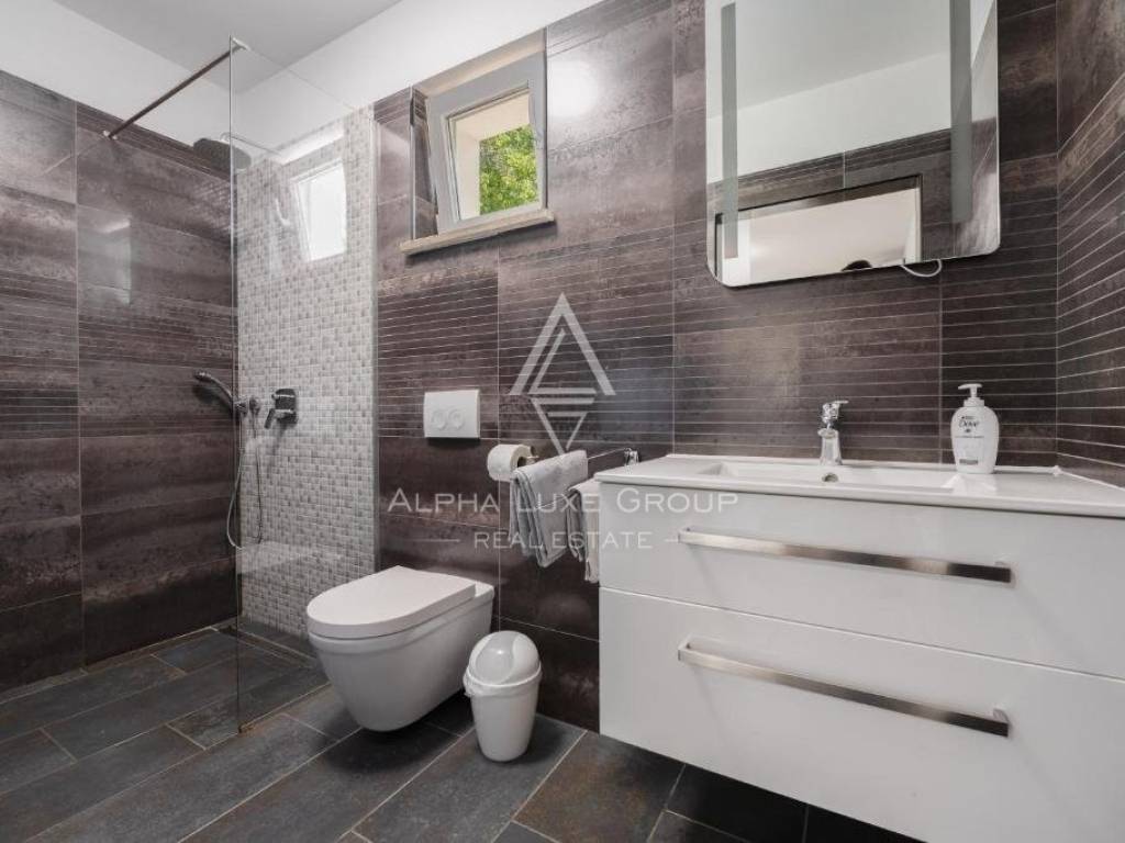 Nestled just outside Labin is an exclusive property, perfect for those seeking solace away from city bustle but with easy access to urban conveniences. This elegantly appointed single-story home offers a seamless living experience with an open-plan layout comprising a living room, dining area, kitchen, four bedrooms, four bathrooms, and a guest toilet, all meticulously designed for comfort and style.